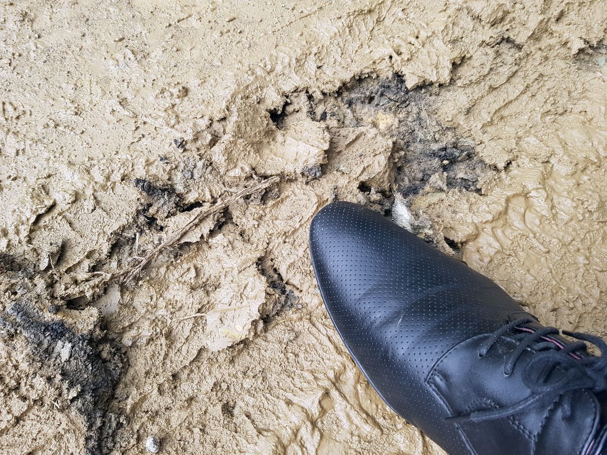 Тем временем, колеса автомобиля мэра уже покрылись слоем глины.