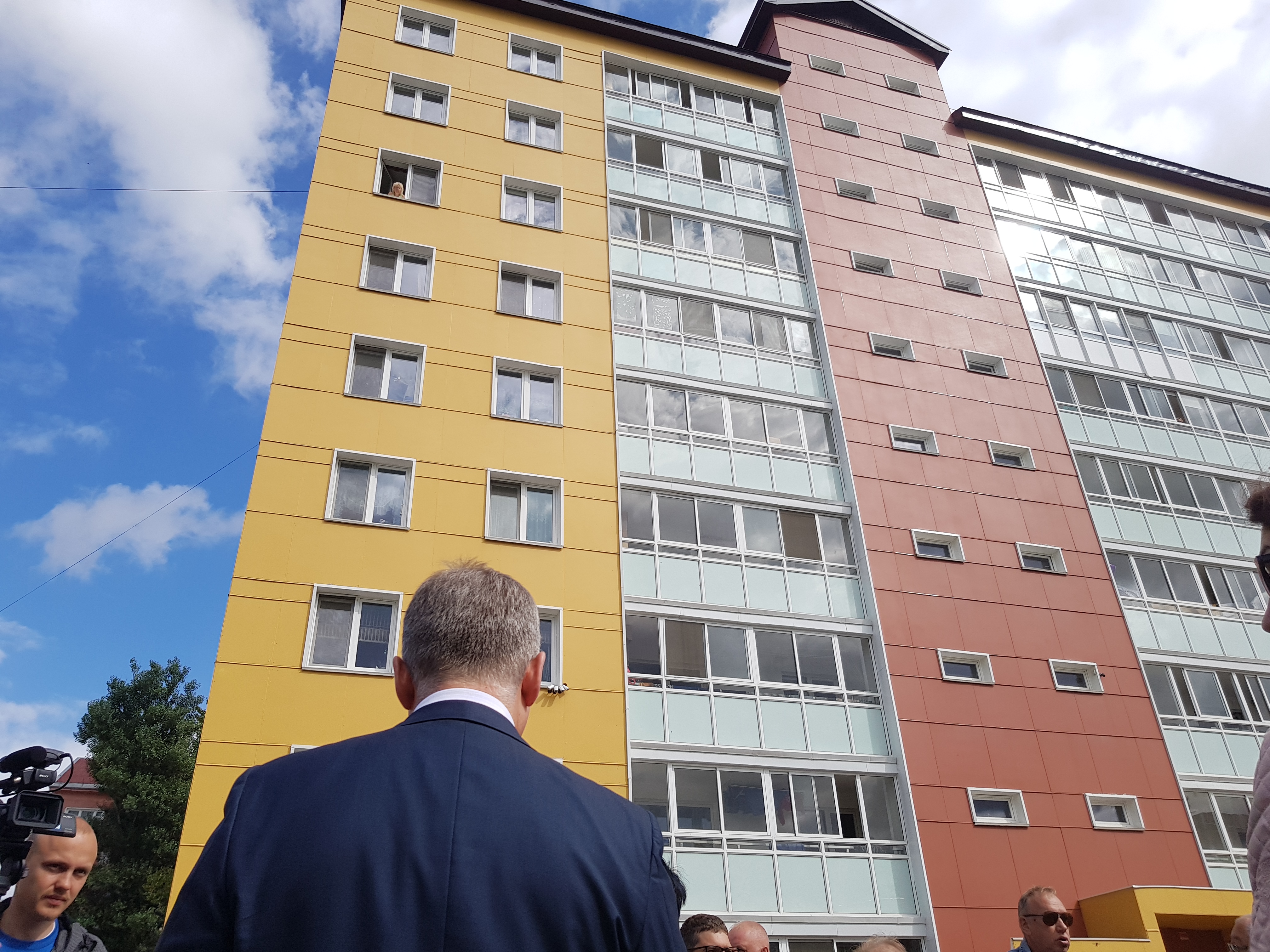 Его тут-же окружили телевизионные камеры, журналисты и просто жители двора, которые не стеснялись запечатлеть встречу с помощью иностранных гаджетов.