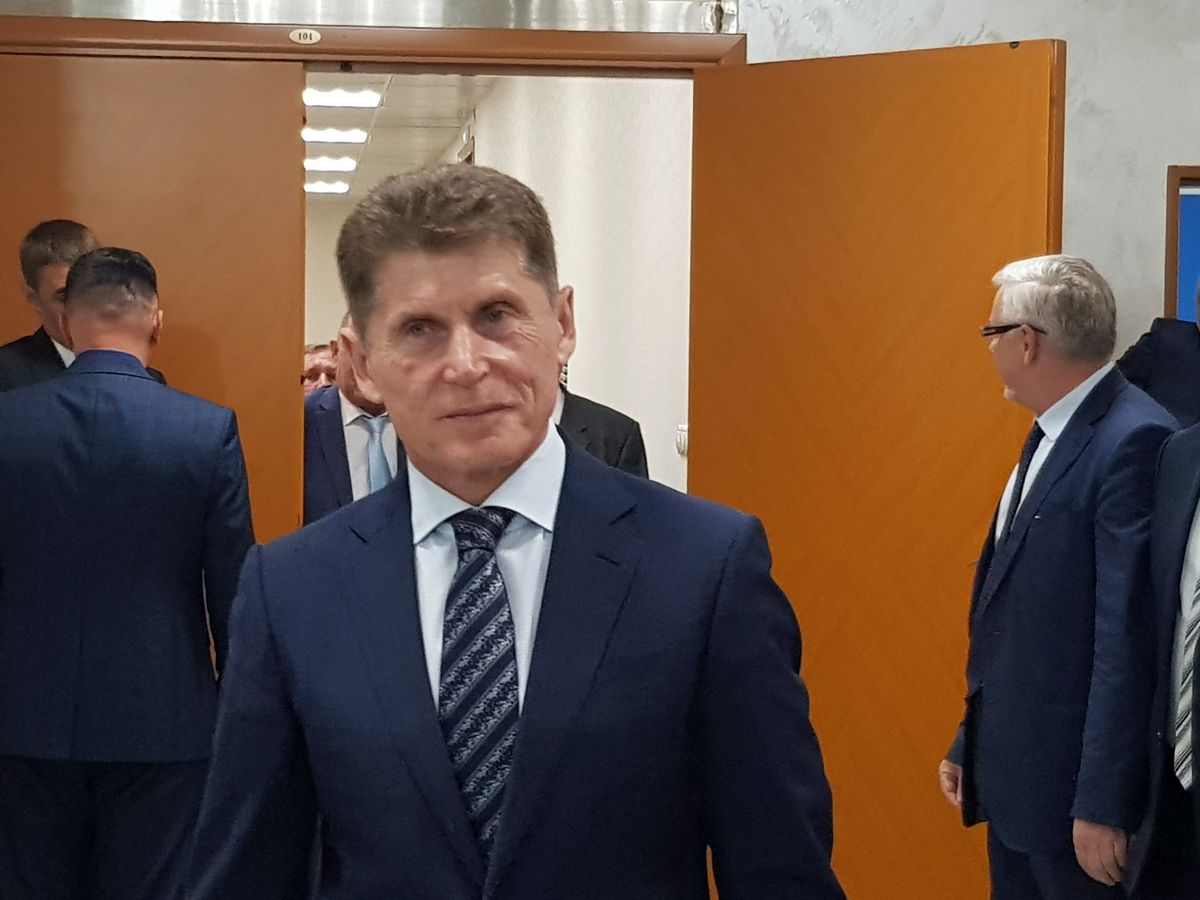 На часах 11–00 и все ждали прибытия губернатора Олега Кожемяко, который стремительно вошел в зал с небольшим опозданием.