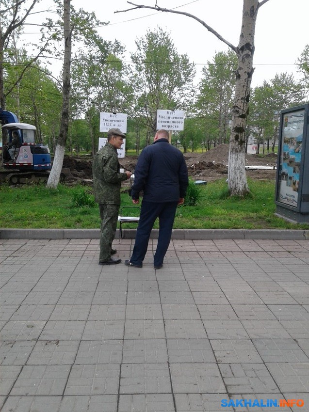 Сахалинец организовал пикет со сбором подписей против повышения пенсионного возраста и НДС.