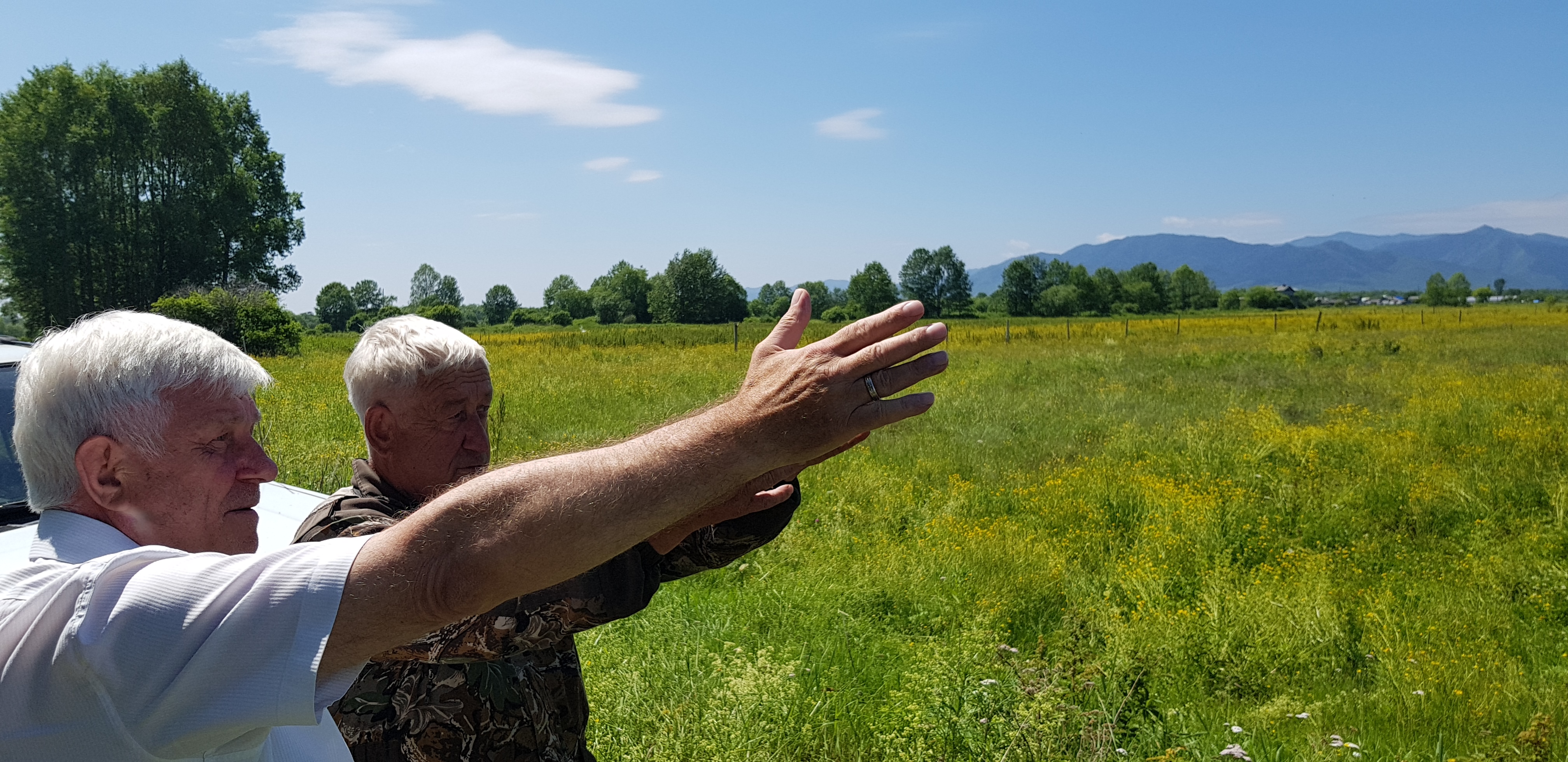 Этот уважаемый житель села, в прошлом зоотехник, живо интересовался происходящим и предлагал поставить “там коровник, там свинарник, там пахать, там рубить, воду отводить”. Соскучился по настоящему делу.