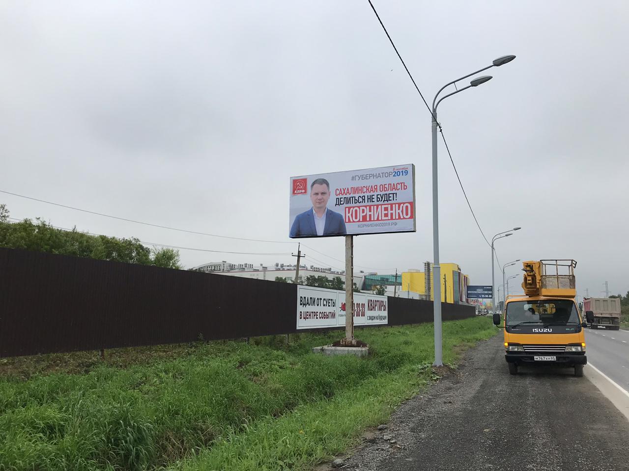“Сахалинский дом рекламы” отказал в размещении баннеров в городе Корсаков по ранее заключенному договору, баннер на улице Ленина был попросту демонтирован и исчез в неизвестном направлении, а на пути из южносахалинского аэропорта агитация оказалась варварски сорванной.