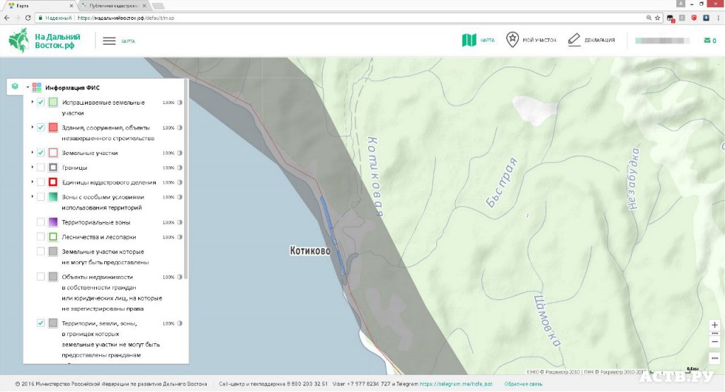 Эта явная ошибка в изображении границ заповедника на государственном Интернет-ресурсе не смутила Поронайскую администрацию, где не могли не знать, что граница заповедника на побережье проходит по урезу воды и где должны были тщательно проверить все ограничения и обременения в отношении испрашиваемых земельных участков. Согласно пунктам 13 и 21 статьи 7 закона № 119-ФЗ (“Закон о дальневосточном гектаре”) в их предоставлении муниципалитет обязан был сразу отказать, однако ФИС “На Дальний Восток” показывает, что процесс их оформления успешно идет.