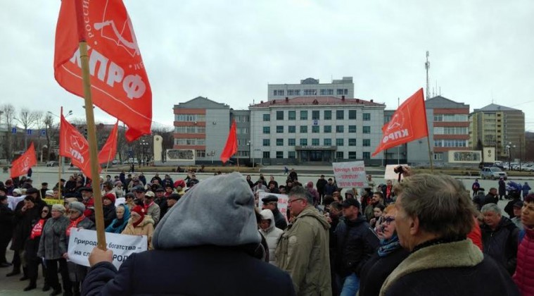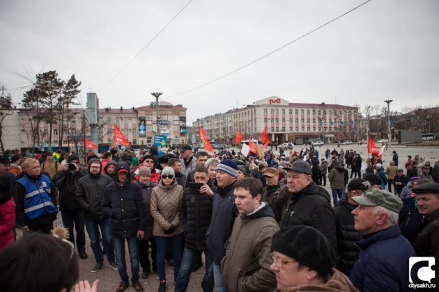 8 апреля в Южно-Сахалинске на площади Ленина состоялся организованный МО КПРФ митинг против коррупции, отмены выборов мэров и социальных льгот. Несмотря на препоны (организованный в этот день властью параллельный митинг «Против терроризма», «случайное» исчезновение электроэнергии в точке подключения звуко-усилительной аппаратуры и резкое похолодание) митинг собрал порядка 300 неравнодушных граждан. Пришли на митинг те, кто считал, что социально-экономическая ситуация в Сахалинской области, как и в стране в целом, критическая, и нужны незамедлительные меры по ее изменению.
