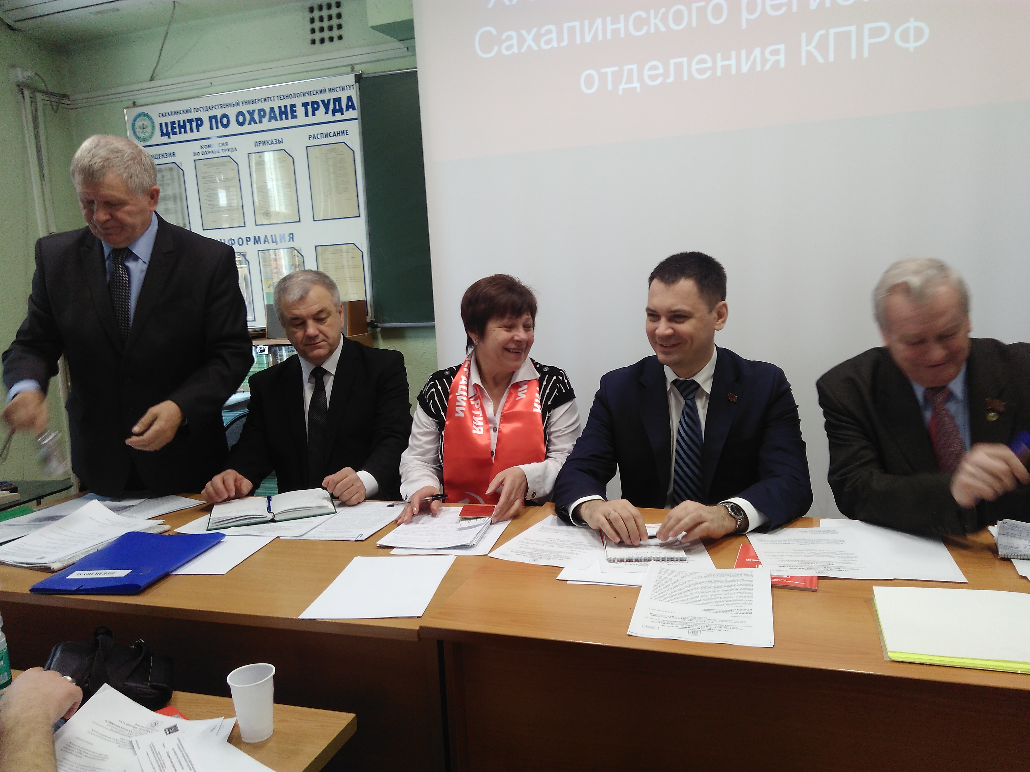 В президиуме: Первый Секретарь Сахалинского обкома КПРФ Белоусов Валерий Николаевич;