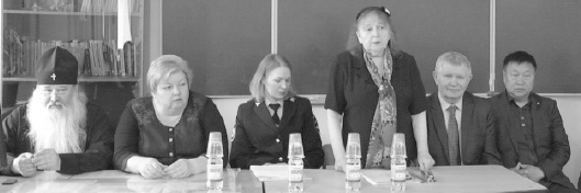 Первым делом председатель Общественного совета Маргарита Третьякова представила гостей мероприятия, среди которых помимо сотрудников полиции и педагогов были архиепископ Тихон Южно-Сахалинской и Курильской епархии, профессор кафедры управления Института права экономики и управления Сахалинского госуниверситета – Валерий Белоусов, председатель региональной общественной организации «Сахалинские корейцы» Им Виктор Иванович, а также Денис Адылов, являющийся заместителем председателя общественного совета и профессиональным юристом.