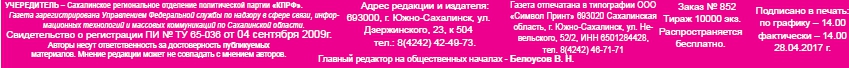 8 апреля Южно-Сахалинске на площади Ленина состоялся организованный МО КПРФ митинг против коррупции, отмены выборов мэров и социальных льгот. Несмотря на препоны (организованный в этот день властью параллельный митинг «Против терроризма», «случайное» исчезновение электроэнергии в точке подключения звуко-усилительной аппаратуры и резкое похолодание) митинг собрал порядка 300 неравнодушных граждан. Пришли на митинг те, кто считал, что социально-экономическая ситуация в Сахалинской области, как и в стране в целом, критическая, и нужны незамедлительные меры по ее изменению. Самая больная на сегодня тема для сахалинцев – коррупция. В Южно-Сахалинске проходят слушания в суде по делу экс- губернатора Хорошавина, и каждое новое заседание пополняет и так уже не маленький список берущих-дающих-передающих миллионные взятки (чиновников, депутатов, крупных бизнесменов). Еще не закончился процесс над преступной группировкой Хорошавина, как арестованы члены управленческой команды нового главы региона: министр сельского хозяйства Кузьменко с замом Муленковой и министр МИЗО Елена Гах. Как оказалось, созданные в регионе Корпорация развития Сахалинской области и ТОРы (территории опережающего развития) ста- ли инструментами для перевода миллиардов бюджетных средств каким-то непонятным, недавно созданным фирмам с уставным капиталом в 10 тыс. руб. Поводом для возмущения сахалинцев стали и результаты деятельности