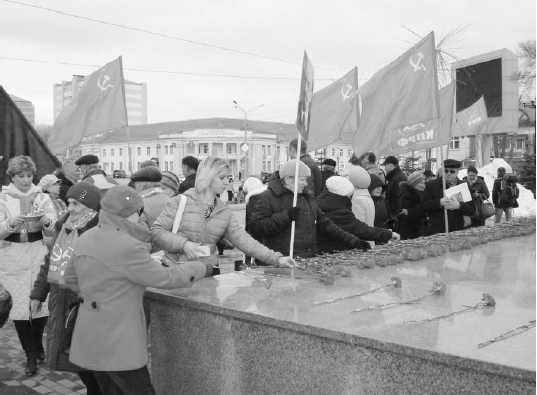 После конференции делегаты и гости из ЦК КПРФ отправились к памятнику В.И.Ленина на торжественный митинг, организованный южно-сахалинскими коммунистами. Отличные песни, звучащие из динамиков, развевающиеся алые знамена создавали особое приподнятое настроение и привлекали внимание прохожих.