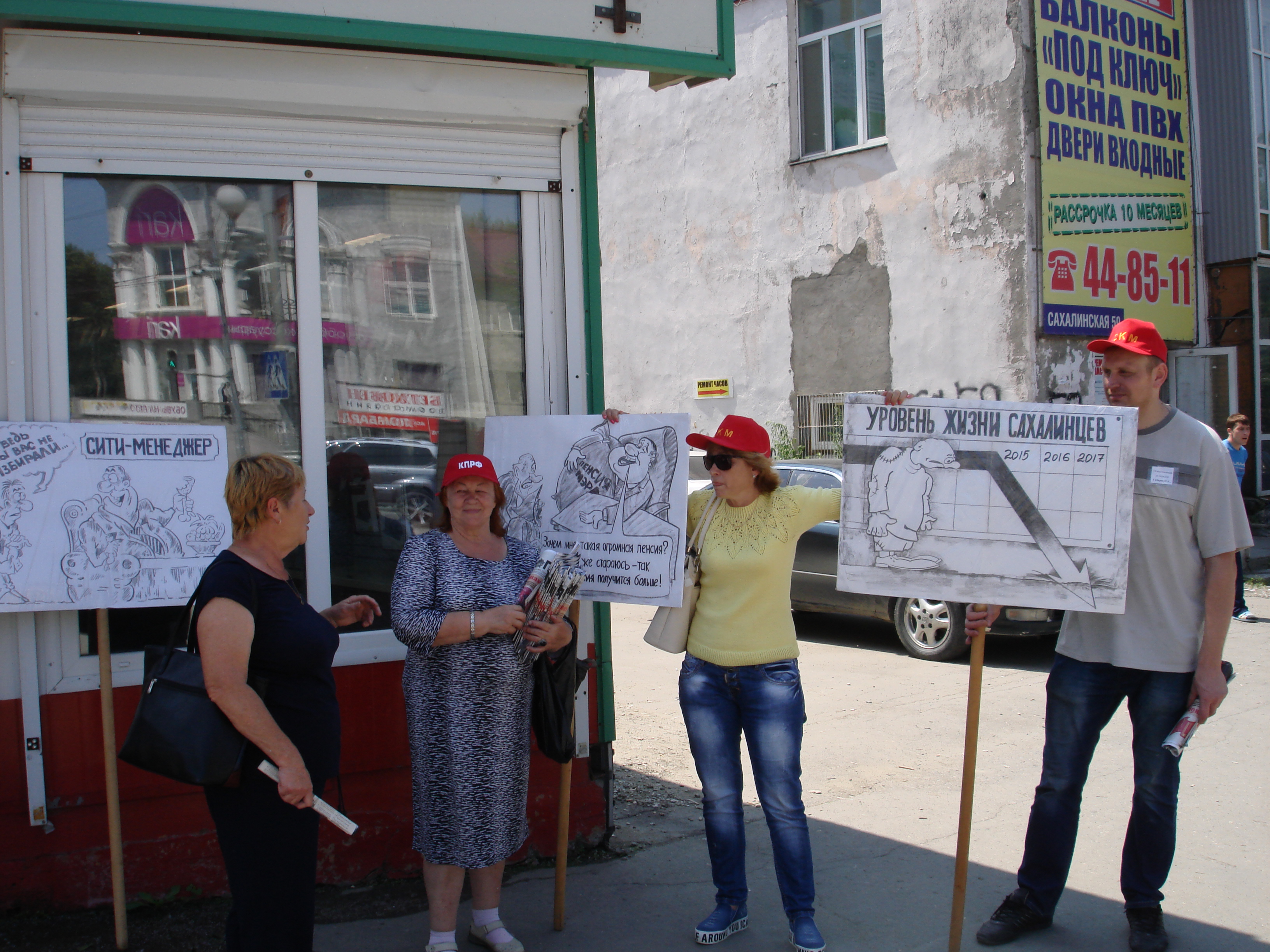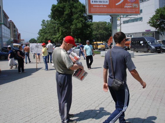 В Южно-Сахалинске были проведены пикеты с участием депутата Сахалинской областной Думы Подойниковой Г.В. и первого секретаря областного комитета КПРФ Белоусова В.Н. На пикетах коммунисты беседовали с сахалинцами, раздавали подготовленные к акции листовки и партийные газеты «Правда», «Советская Россия», «Возрождение».