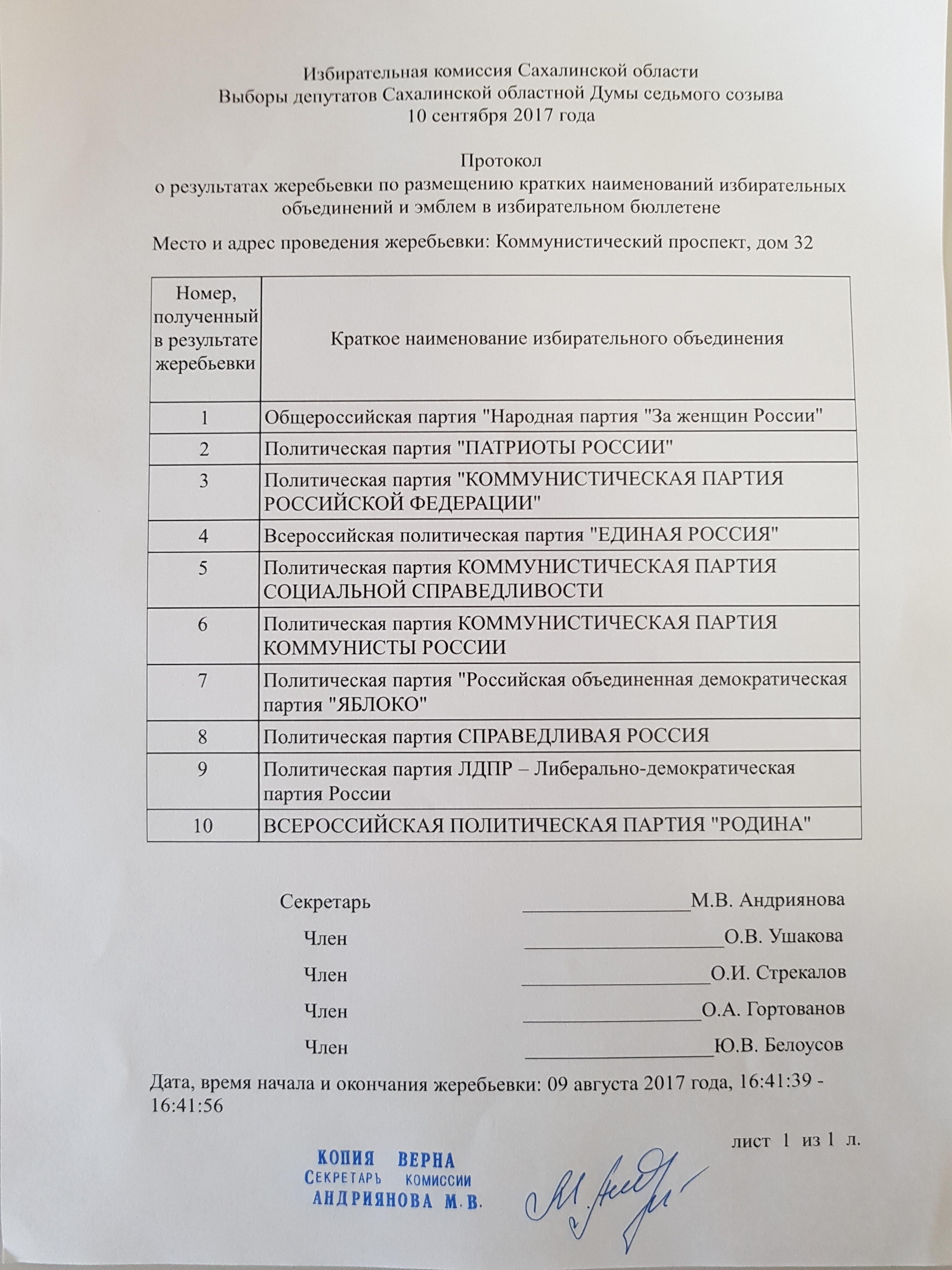 Накануне, в стенах Сахалинского избиркома состоялась жеребьевка, в ходе которой были определены места политических партий в избирательных бюллетенях. Коммунистическая Партия Российской Федерации (КПРФ) занимает в избирательном бюллетене третье место.