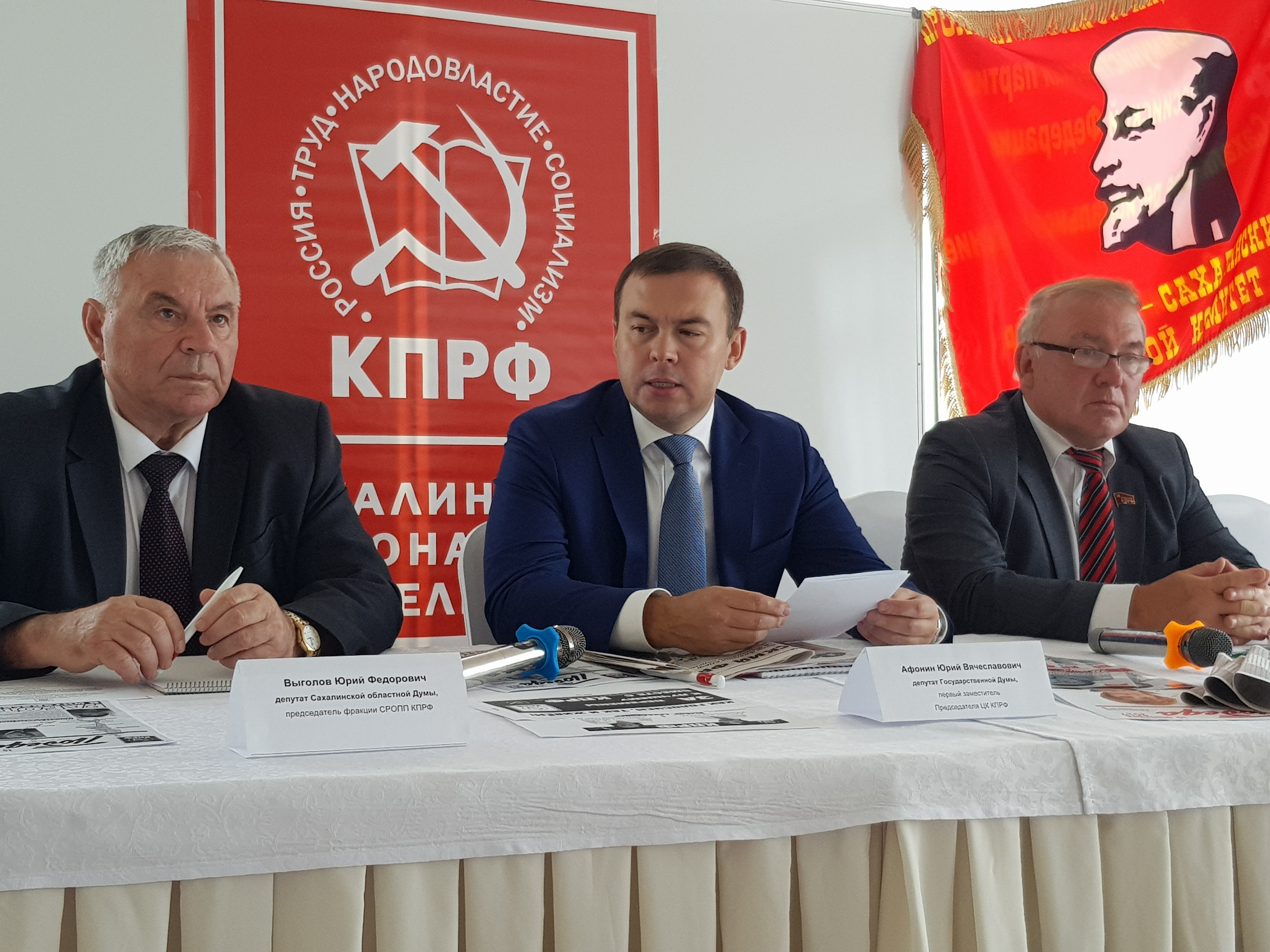 В ходе рабочего визита в Сахалинскую область заместитель Председателя ЦК КПРФ Ю. В. Афонин дал пресс-конференцию для региональных СМИ. В общении с журналистами также приняли участие председатель ЦКРК КПРФ Н. Н. Иванов, депутаты фракции КПРФ в Сахалинской областной Думе Ю. Ф. Выголов, С. В. Иванова, Г. В. Подойникова.