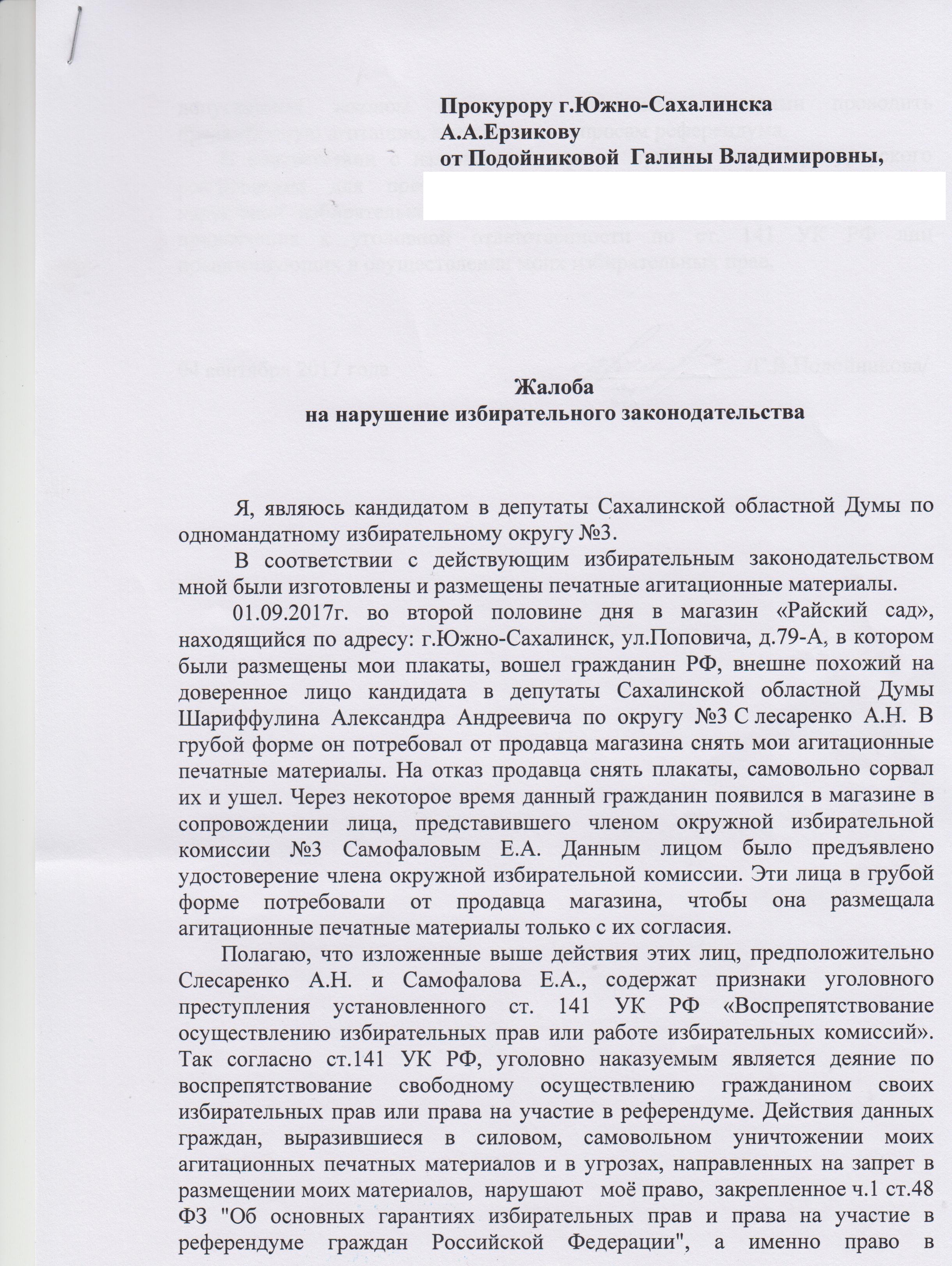 В выборный штаб сахалинского отделения КПРФ регулярно поступают сигналы о возможных нарушения выборного законодательства. Сегодня мы расскажем о самом истеричном факте – уничтожении агитационного материала кандидата в депутаты Сахалинской областной Думы седьмого созыва Галины Подойниковой.