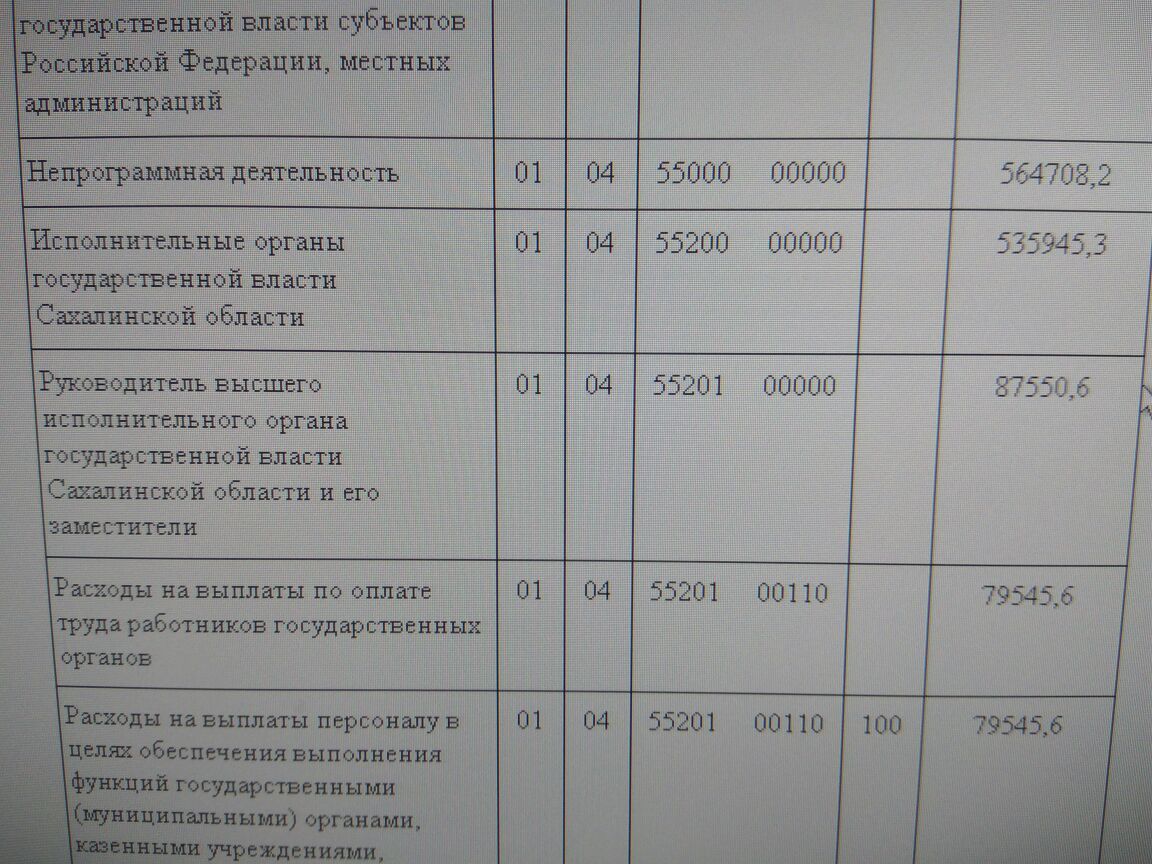 Давайте рассмотрим расходы областного бюджета на содержание губернатора Сахалинской области и на руководство регионального правительства.