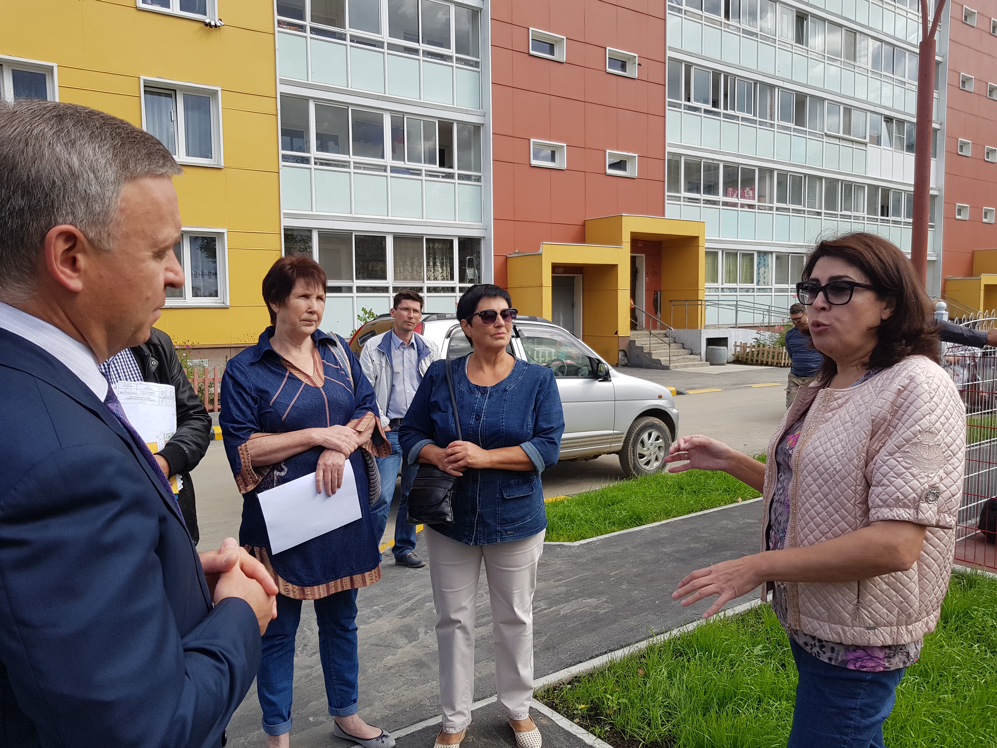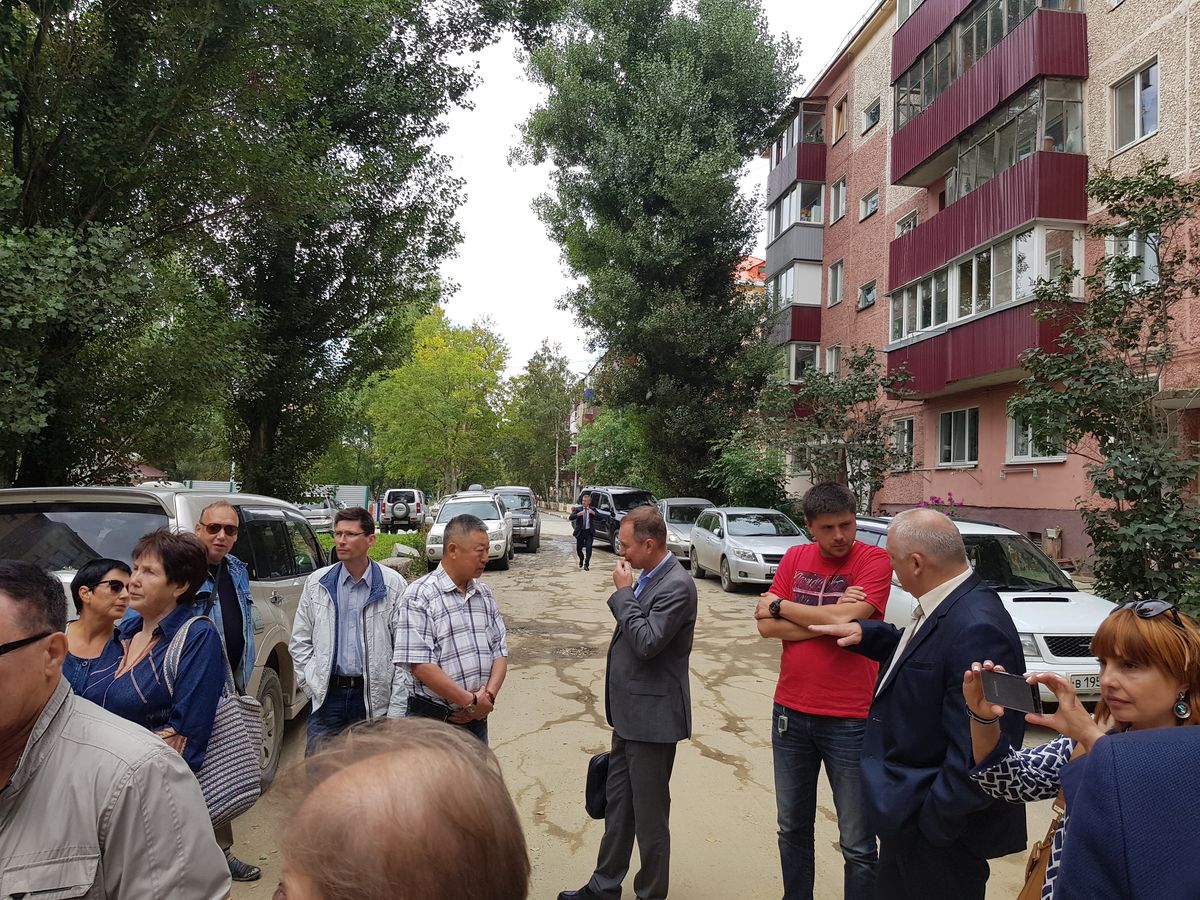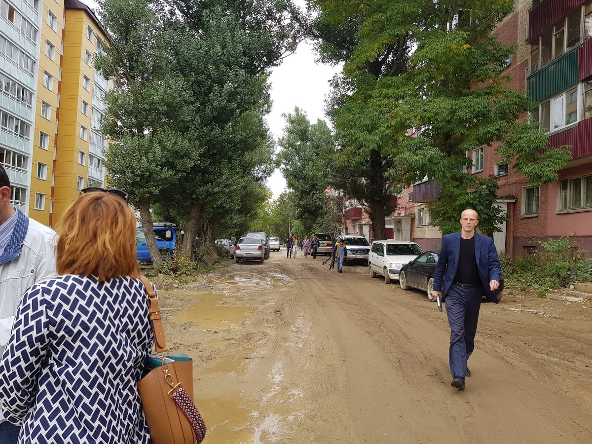 Сергей Надсадин пообещал жителям, что грязь во дворах устранят, восстанавливать отмостку дома будут незамедлительно, в текущем году. А уж в 2018 году как развернется стройка и территория дома получит замечательный асфальт и детскую площадку за миллион рублей.