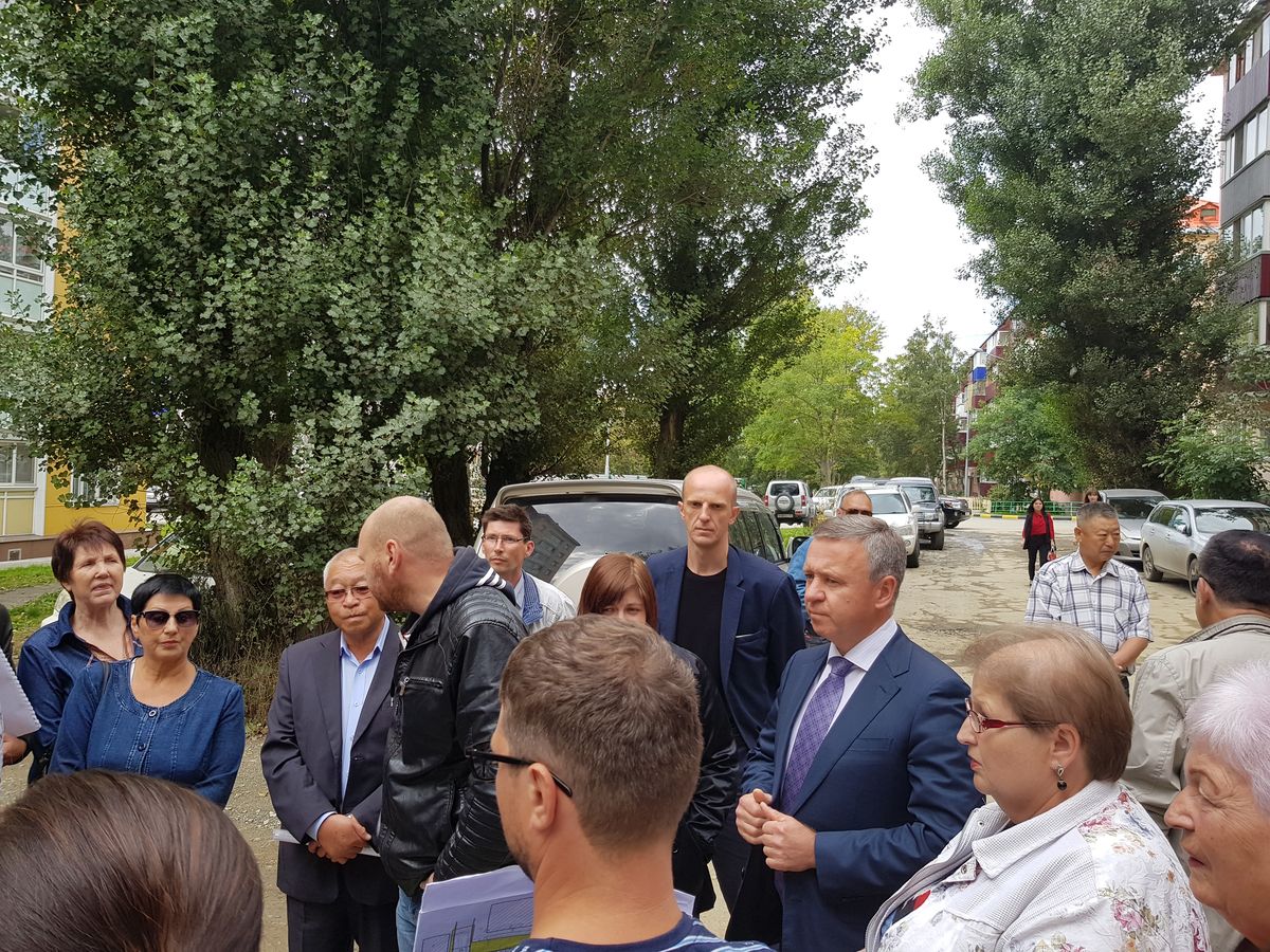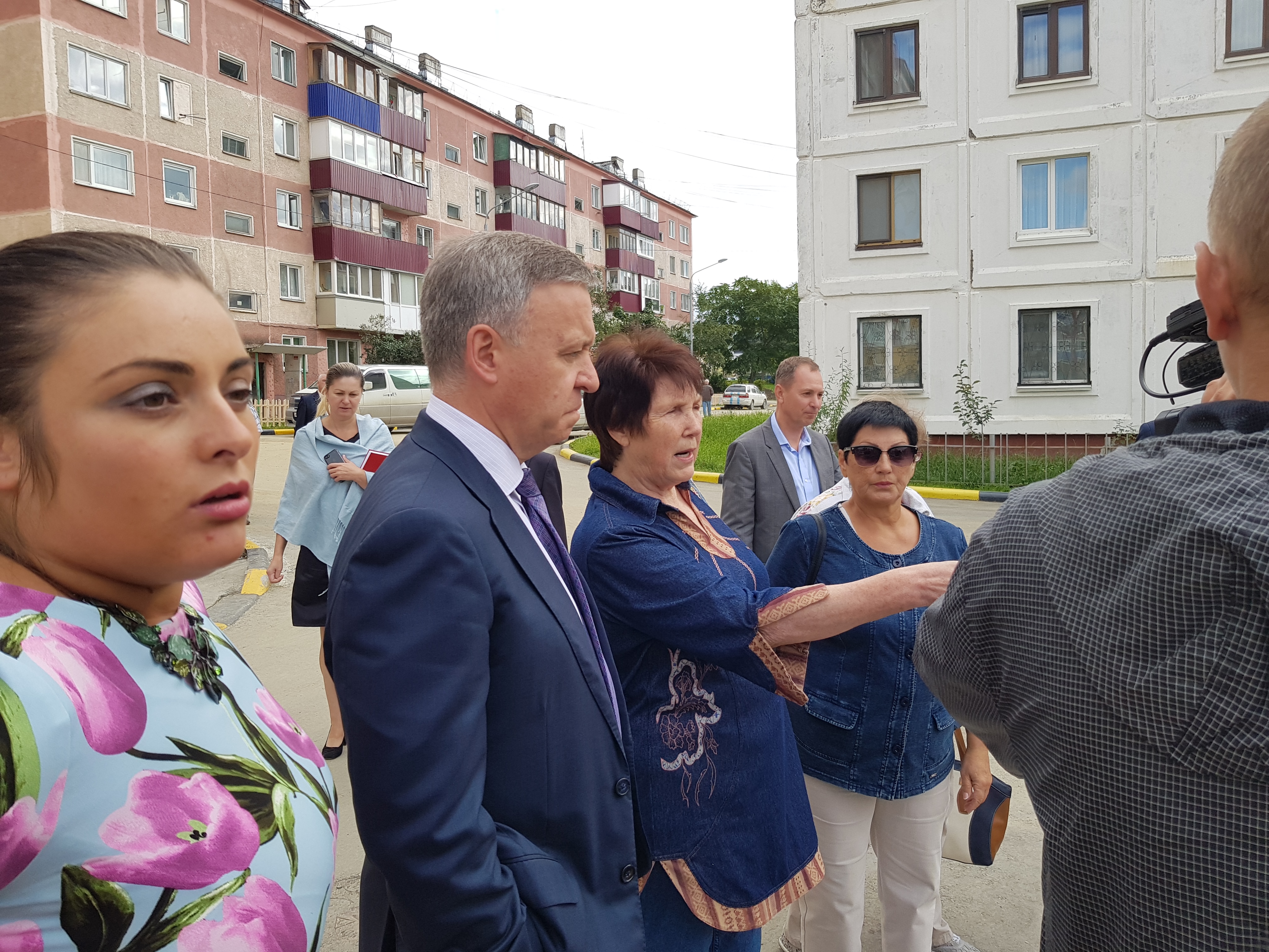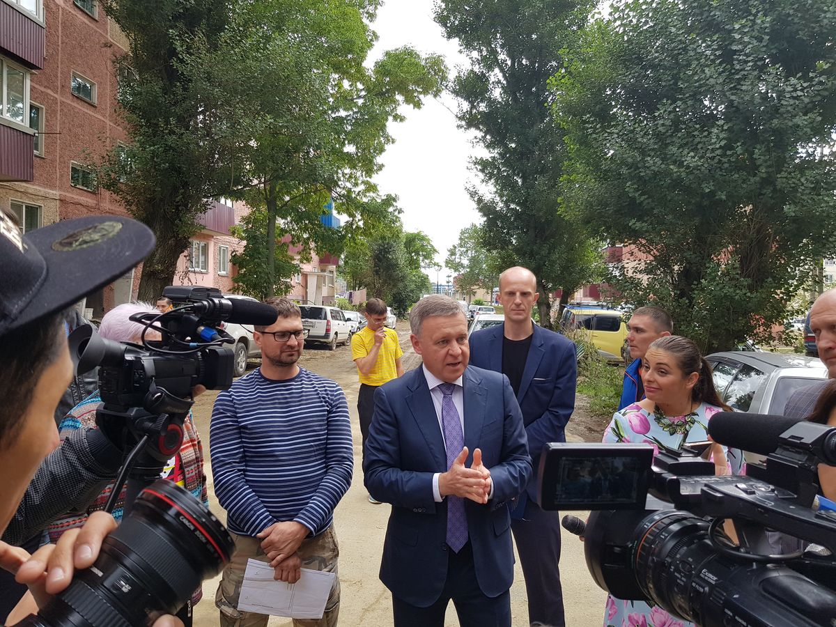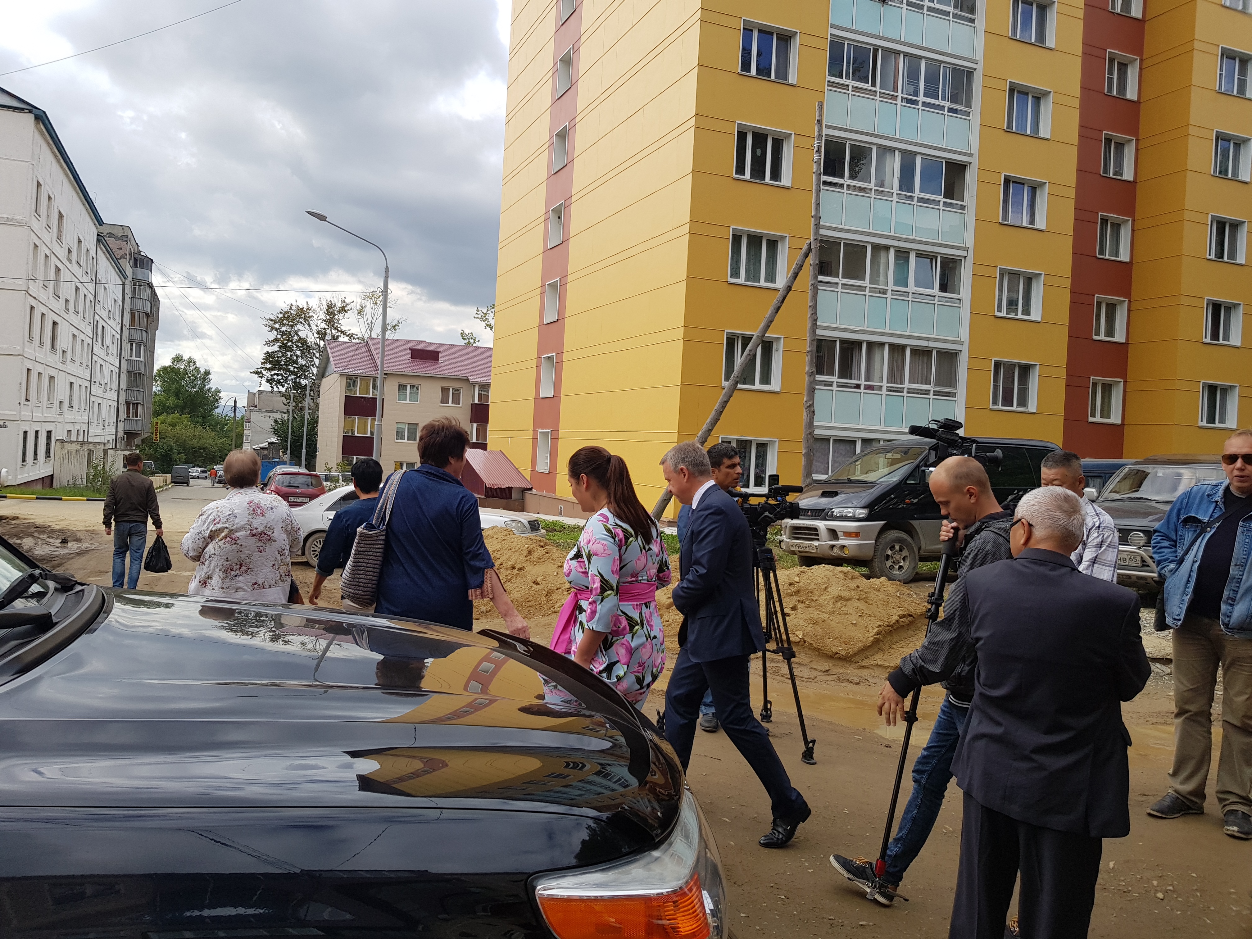 Пока шла оживленная дискуссия и высказывались претензии, вдали показалась фигура последнего, избранного прямым голосование жителей, мэра Южно-Сахалинска Сергея Надсадина.
