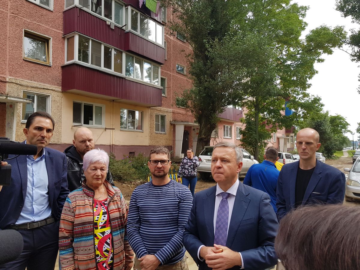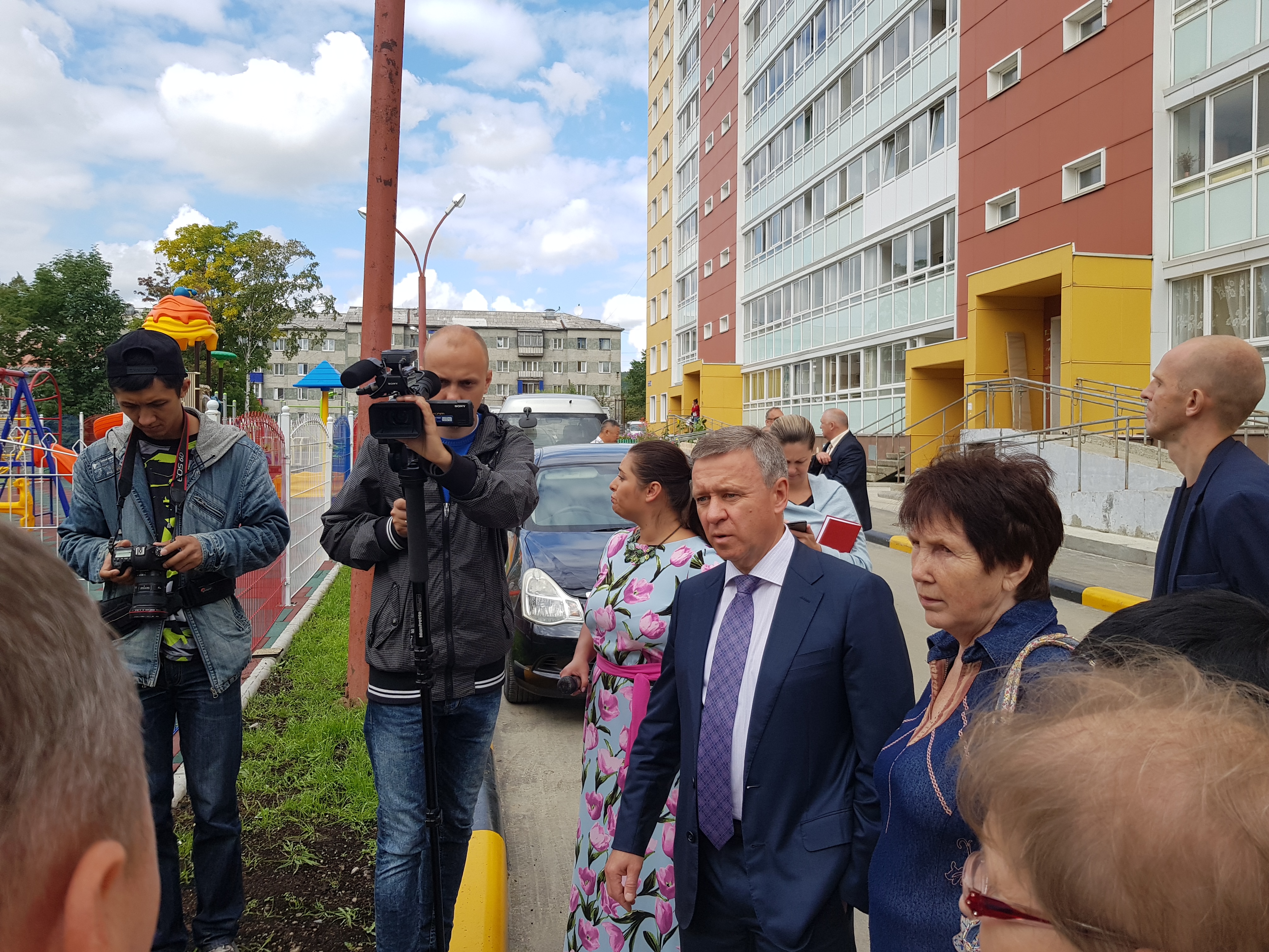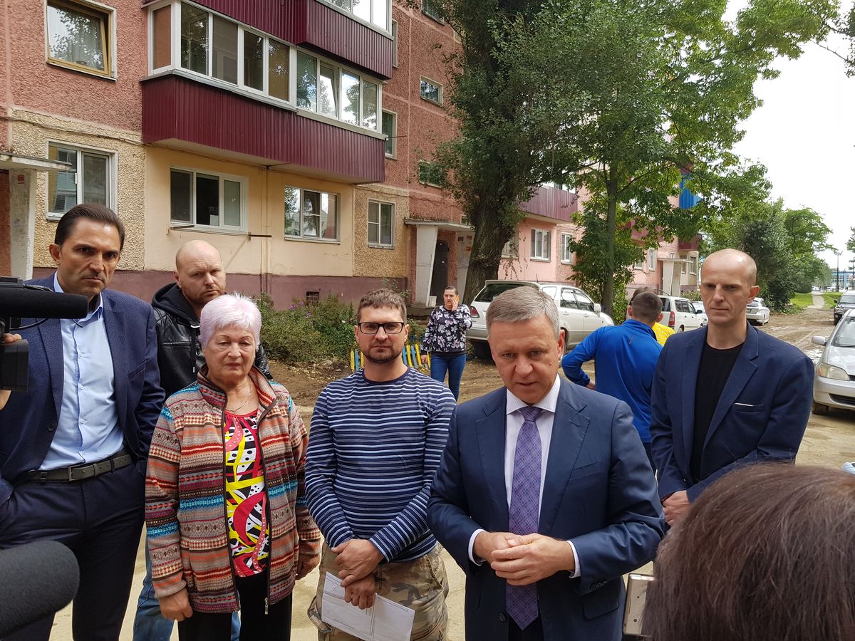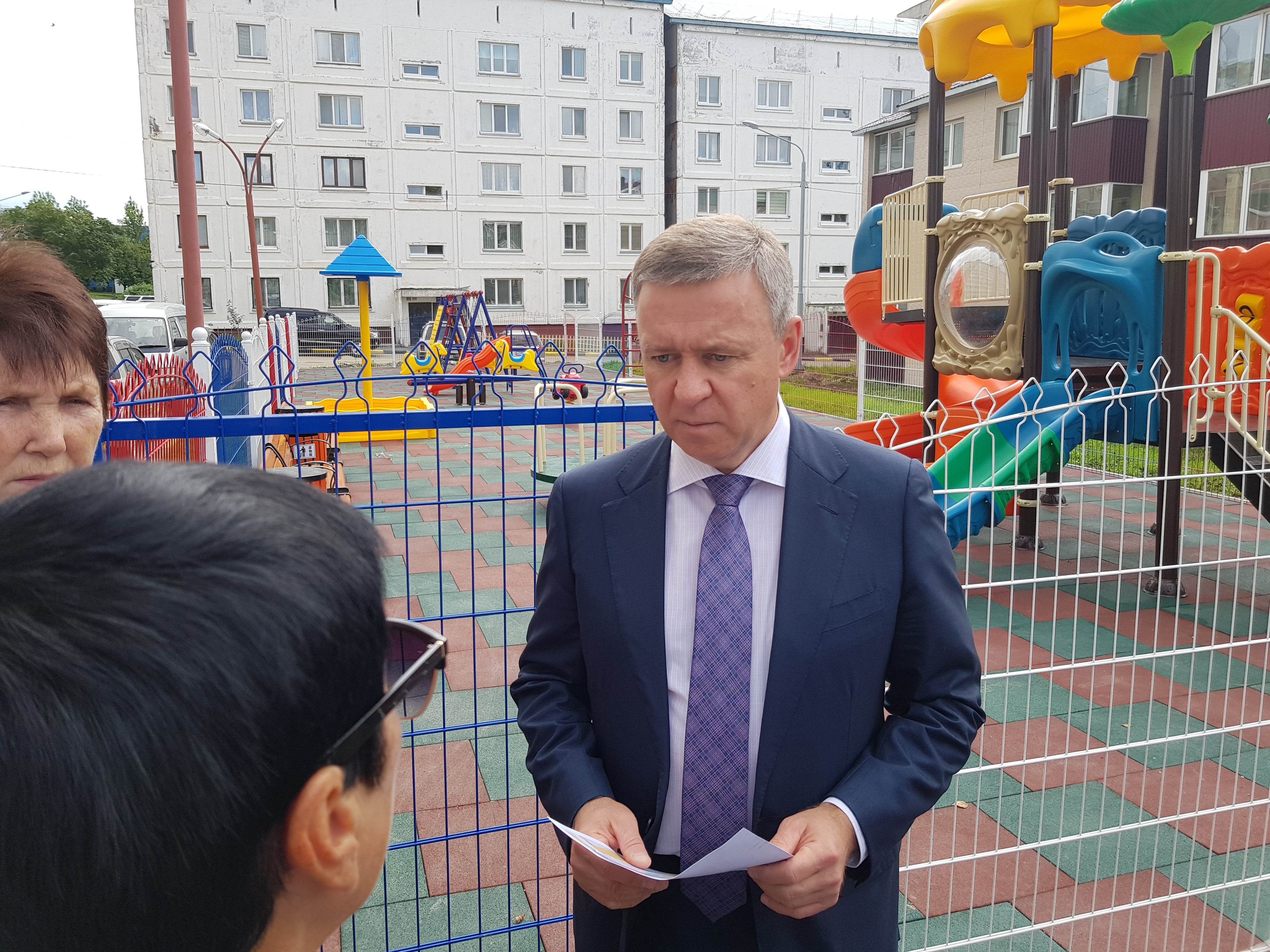 Пока шла оживленная дискуссия и высказывались претензии, вдали показалась фигура последнего, избранного прямым голосование жителей, мэра Южно-Сахалинска Сергея Надсадина.