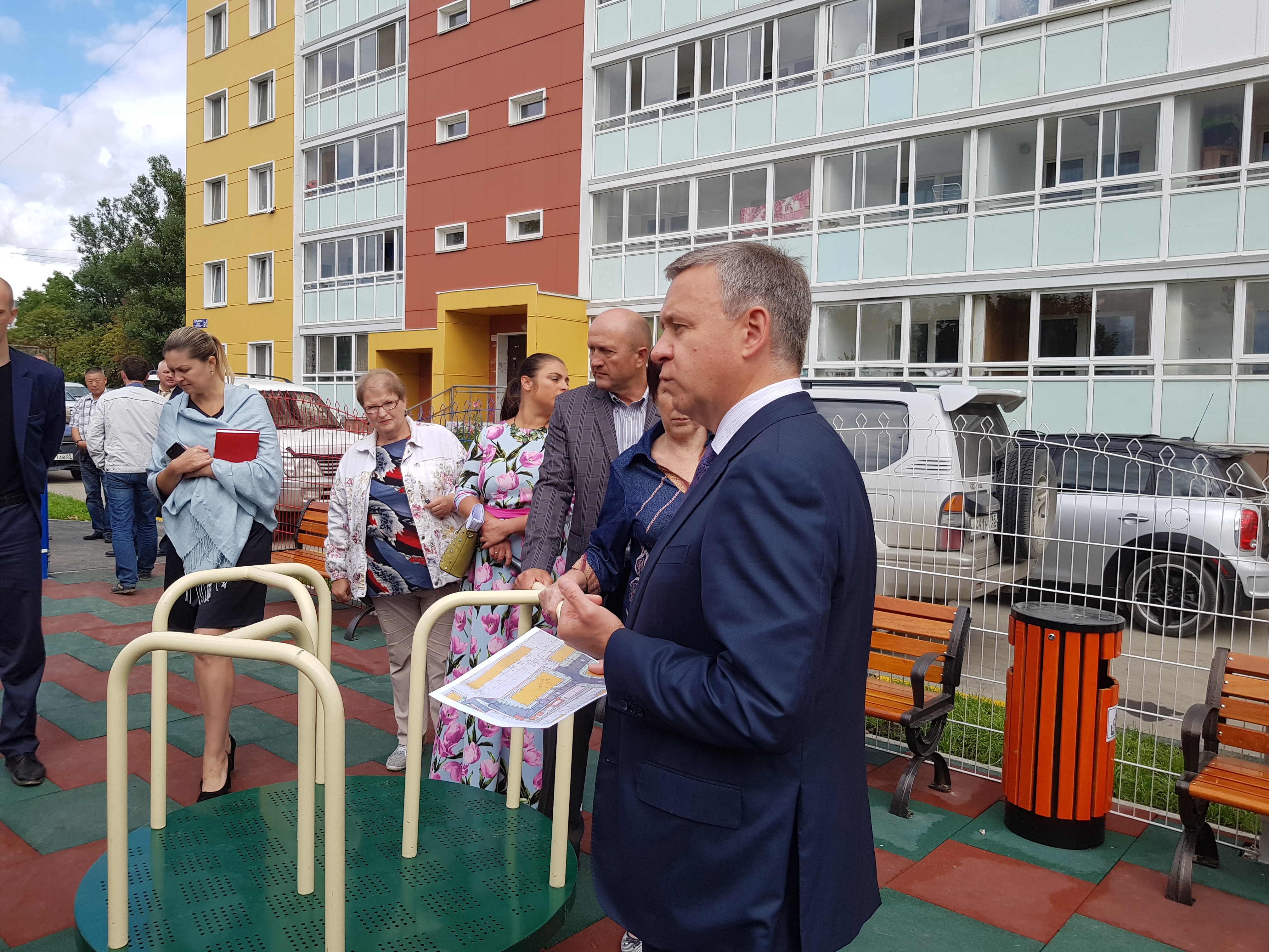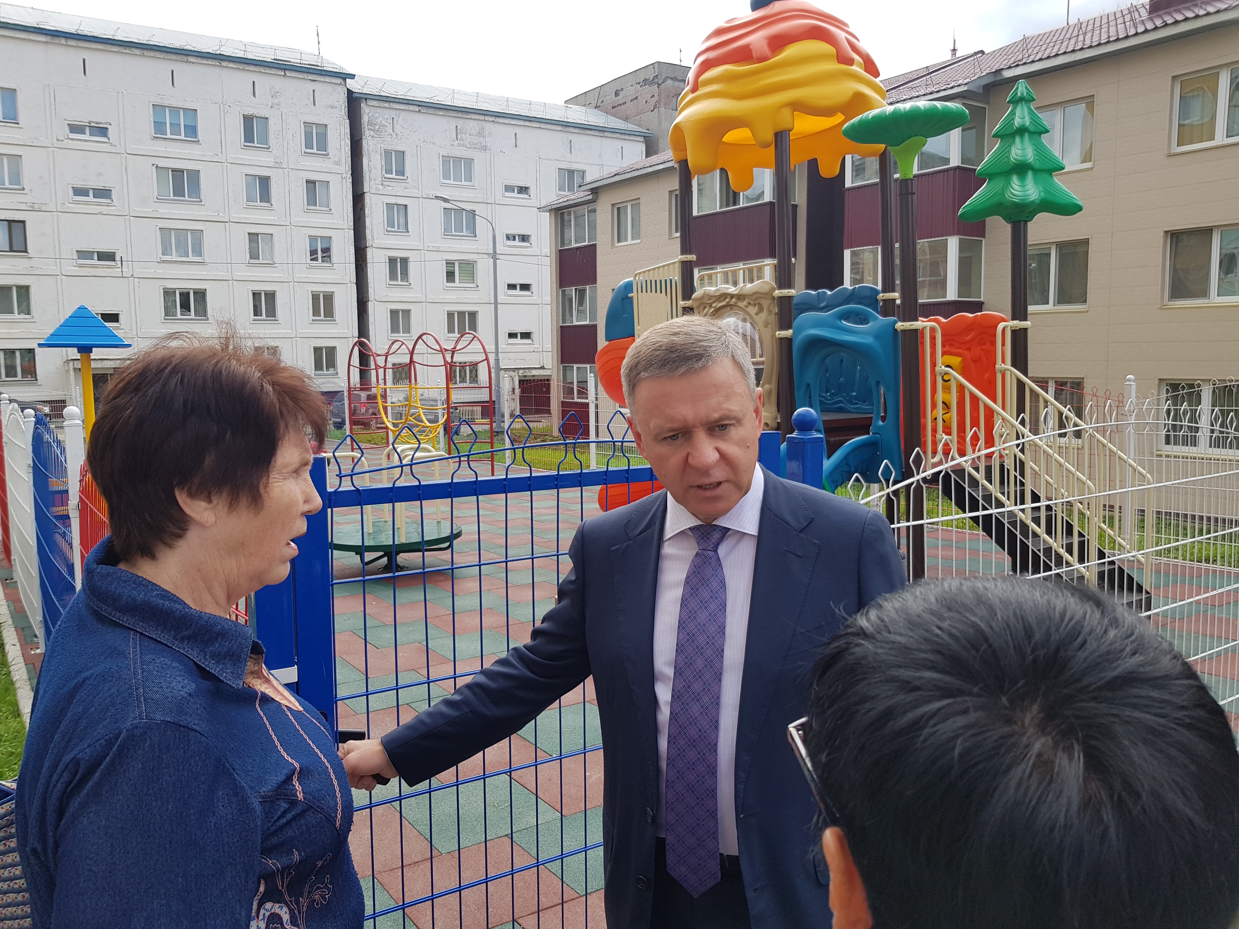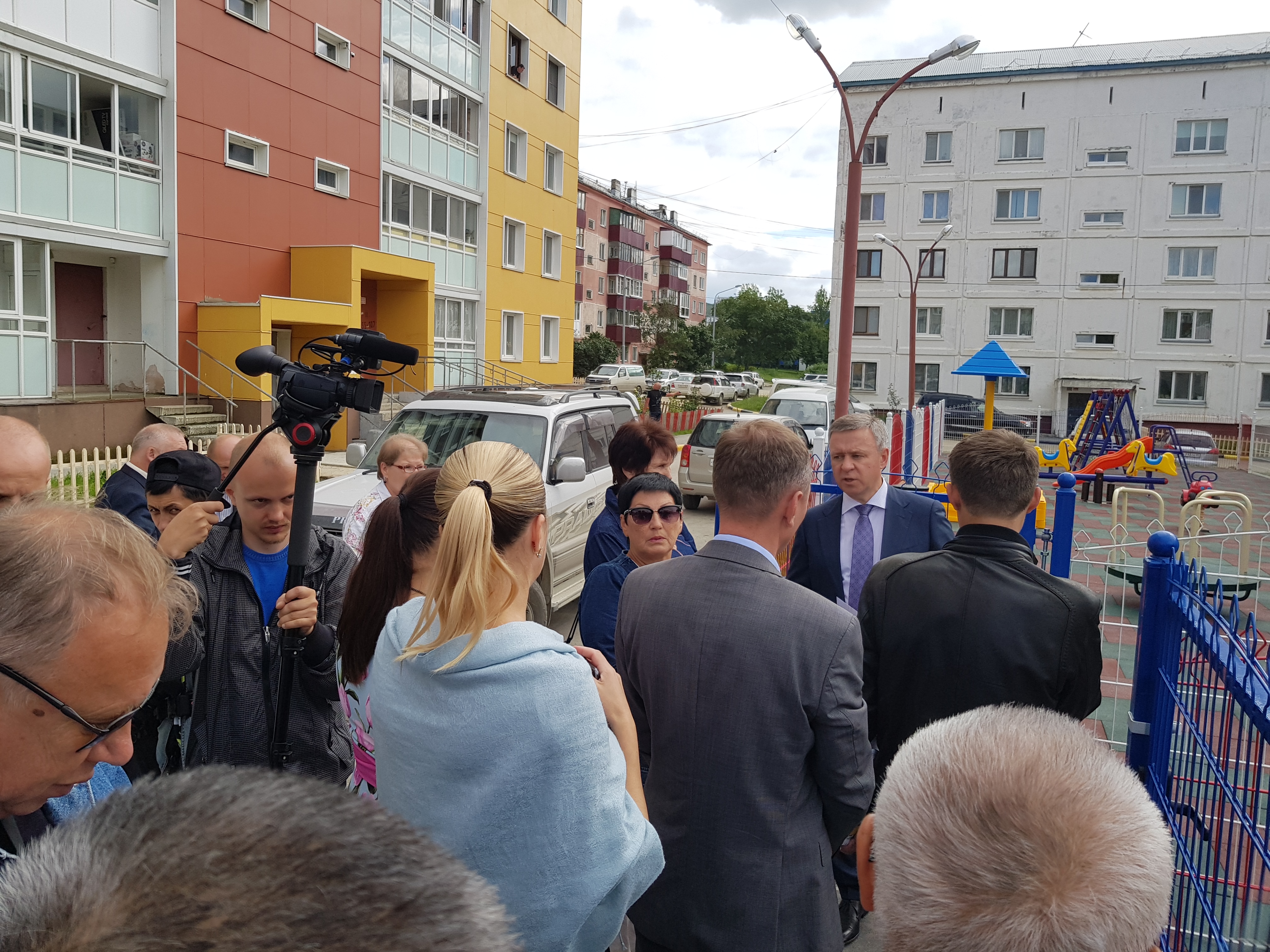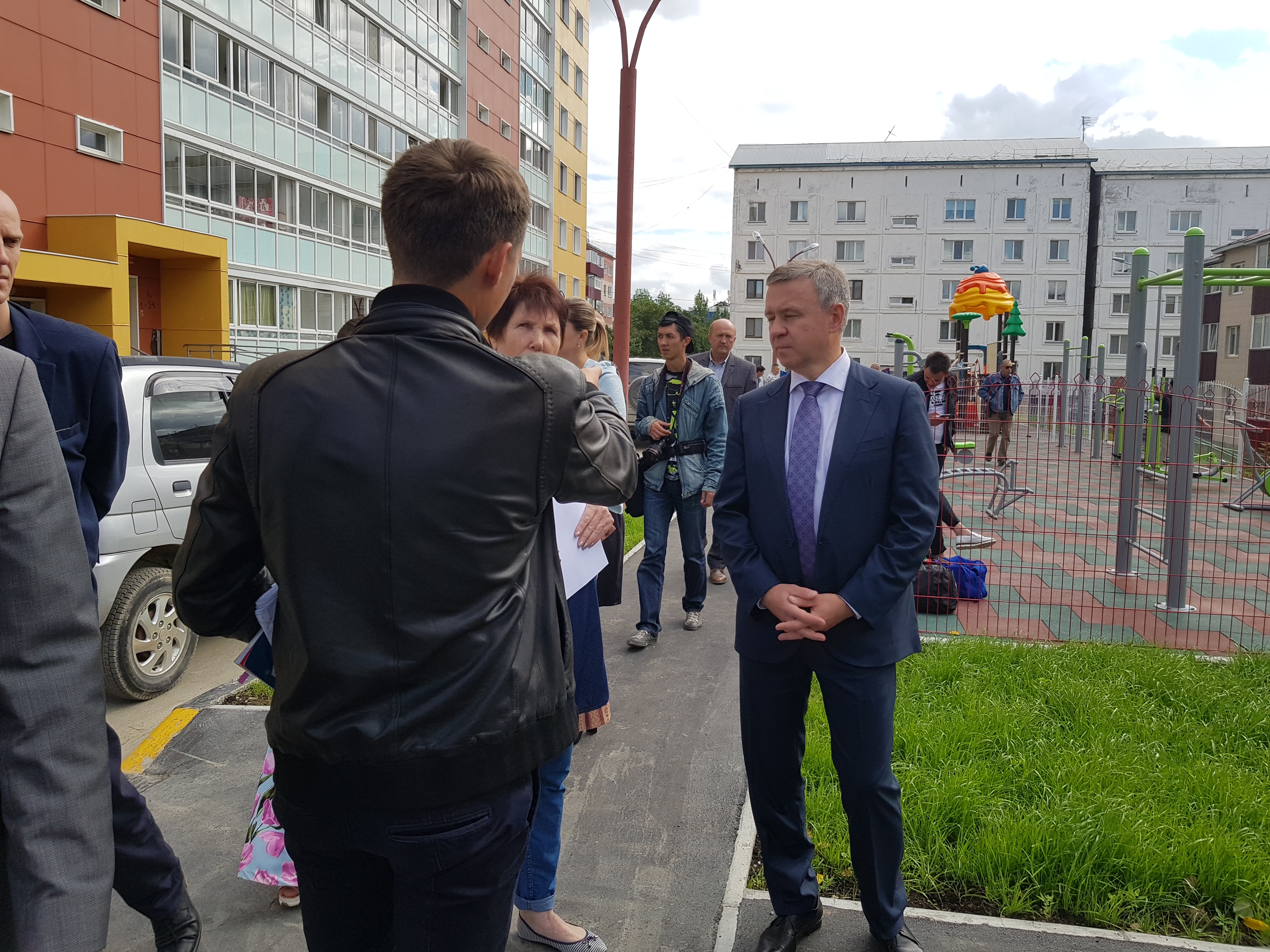 Пока шла оживленная дискуссия и высказывались претензии, вдали показалась фигура последнего, избранного прямым голосование жителей, мэра Южно-Сахалинска Сергея Надсадина.