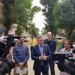 Его тут-же окружили телевизионные камеры, журналисты и просто жители двора, которые не стеснялись запечатлеть встречу с помощью иностранных гаджетов.