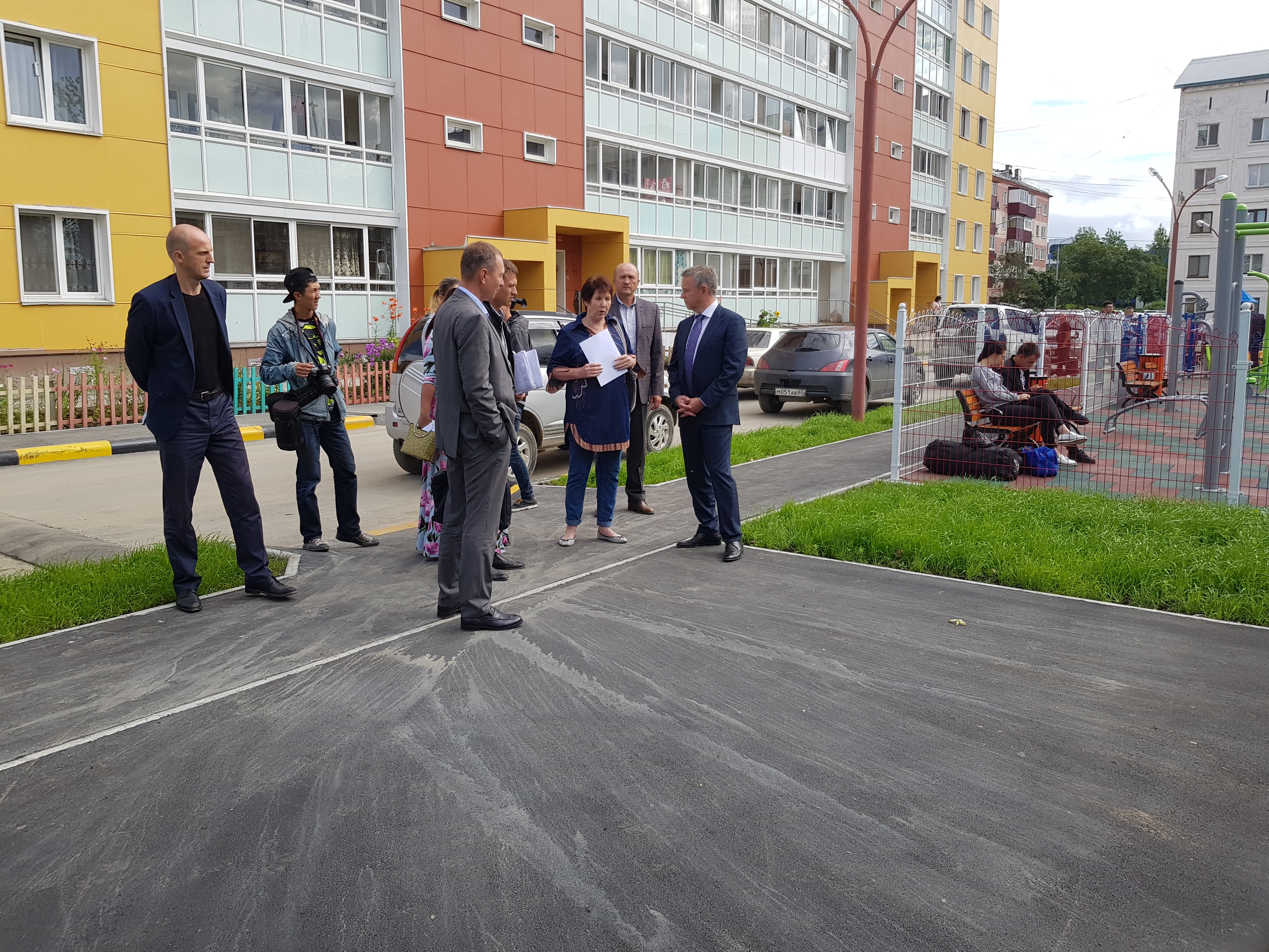 Те буквально отвоевали мэра у своих коллег и принялись сетовать на свою жизнь и состояние двора их нового дома. Сумели выбить металлическое ограждение газона во дворе, беседку со скамейками, кустарники.
