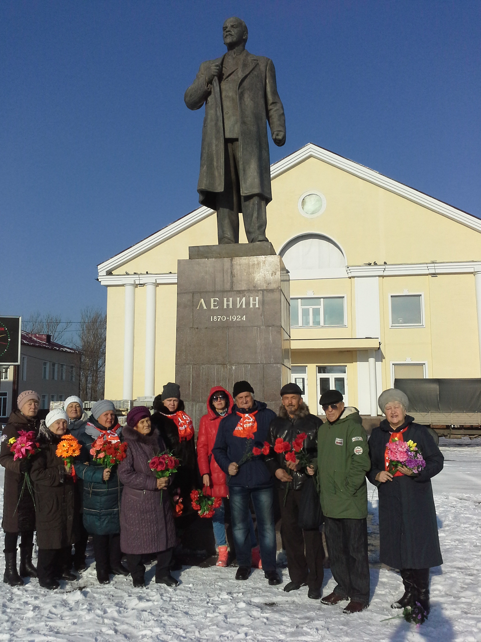 Коммунисты Александровск-Сахалинского района собрались на площади у памятника вождю мирового пролетариата с тем, чтобы отпраздновать 100-летие Великой Октябрьской социалистической революции.