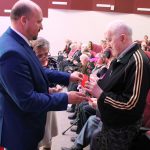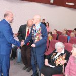 В зале был организован просмотр кинофильма, посвященный этому событию. После чего вручали награды самым заслуженным членам партии – ее ветеранам. Награды вручали: член Центрального Комитета партии КПРФ Павел Ашихмин и депутат Сахалинской областной Думы Светлана Иванова.