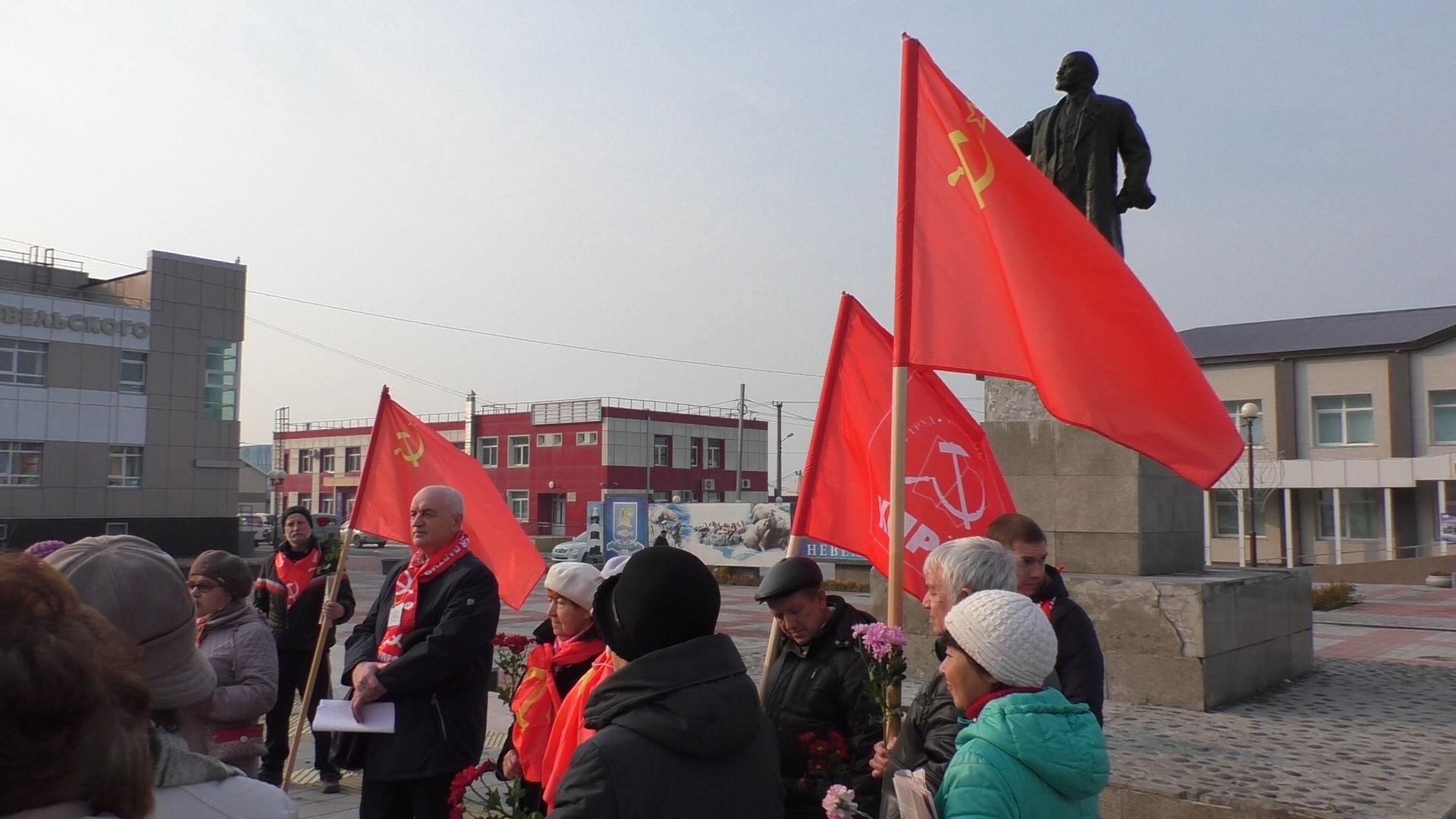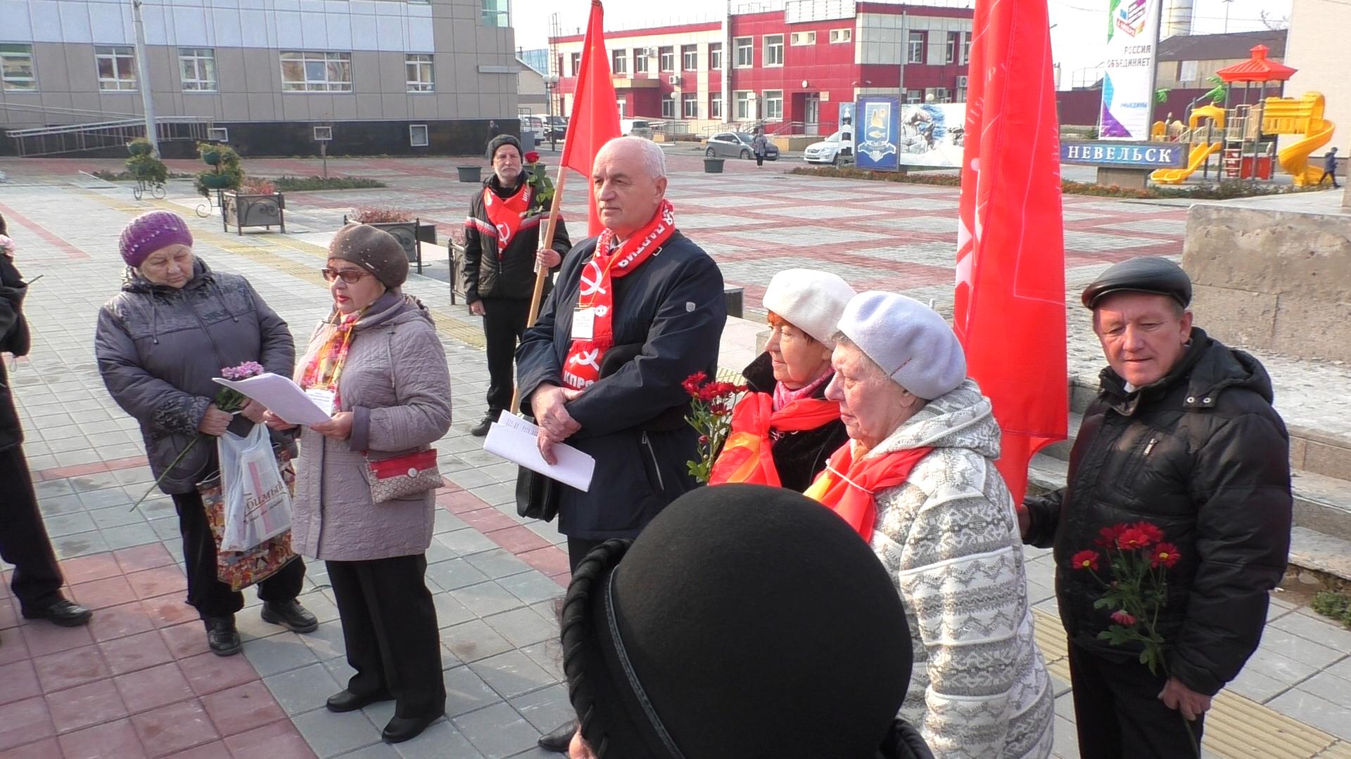 7 ноября с 11-00 до 11-30 состоялся торжественный митинг на пл. им. В.И. Ленина, посвященный празднованию 100-летия Великой Октябрьской социалистической революции, с возложением цветов к памятнику В.И. Ленина. На нем выступали: заместитель председателя Невельского отделения ООО «Дети войны» Галина Гудова, секретарь Невельского местного отделения Иван Кудин, пенсионер и ветеран МВД Владимир Троян. Всего на митинге присутствовало около 50 человек, событие освещало местное телевидение.
