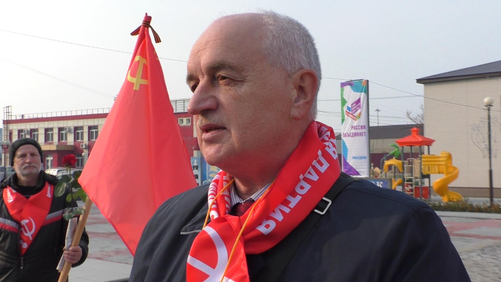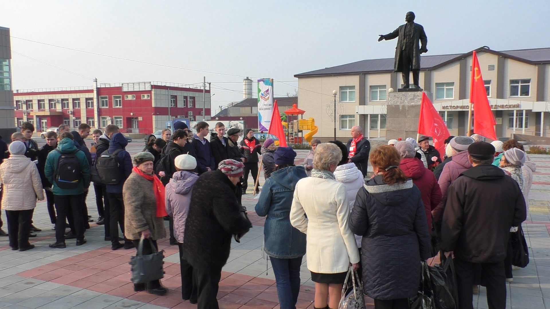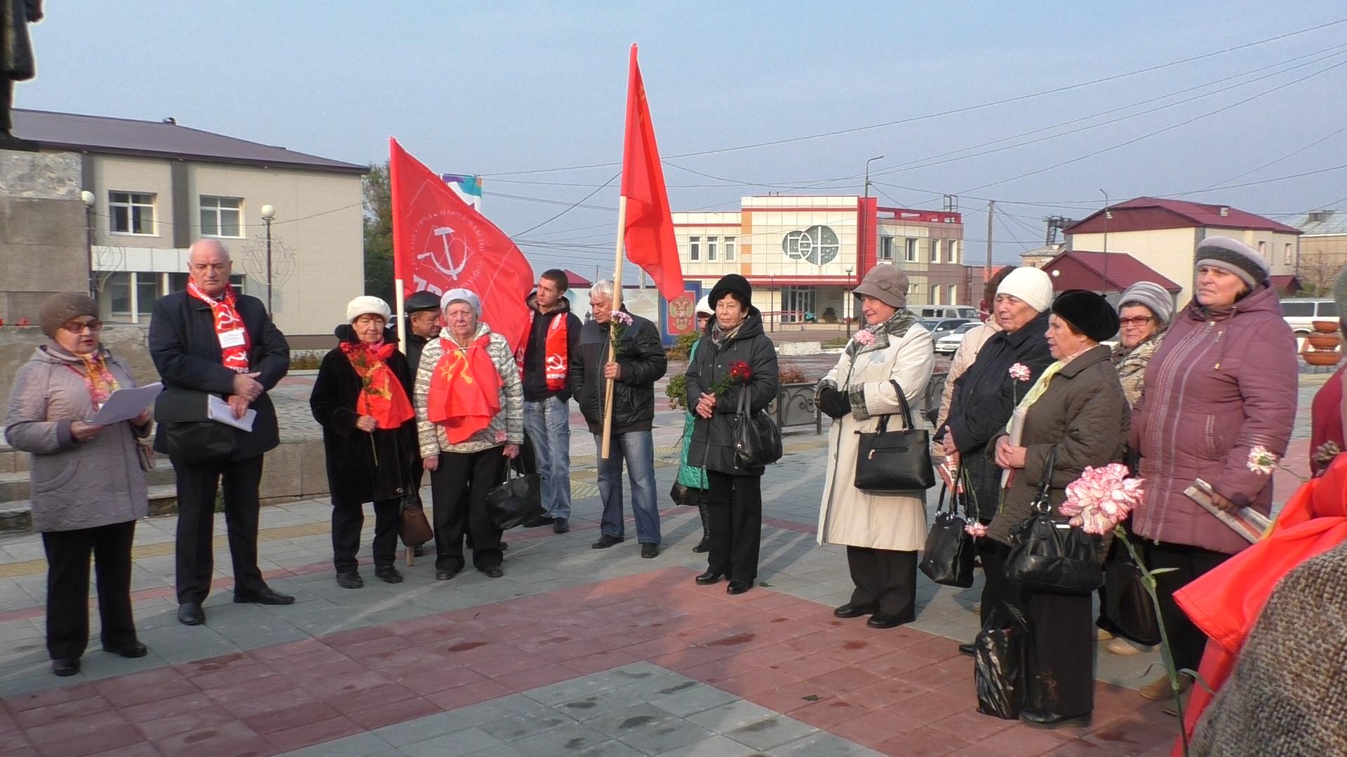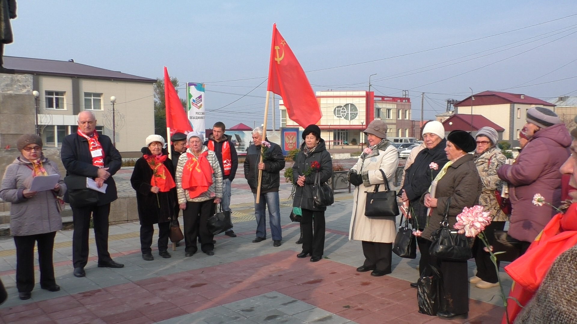 Цвету к постаменту несли коммунисты, сторонники партии и молодежь районного центра.
