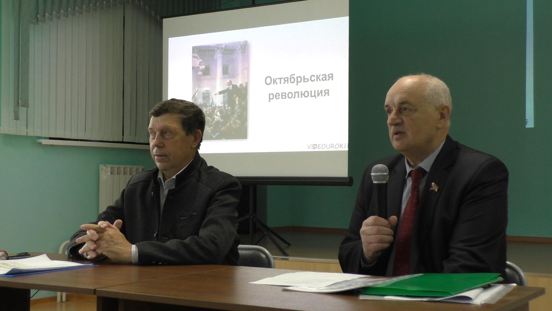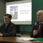 Позже,в центральной районной модельной библиотеке г. Невельска, прошел круглый стол. Тема собрания: «Значение Великой Октябрьской социалистической революции на современном этапе». На встрече выступали: секретарь Невельского местного отделения Иван Кудин, историк и журналист Игорь Орехов, член правления Невельского отделения ООО «Дети войны» Вера Шляк.