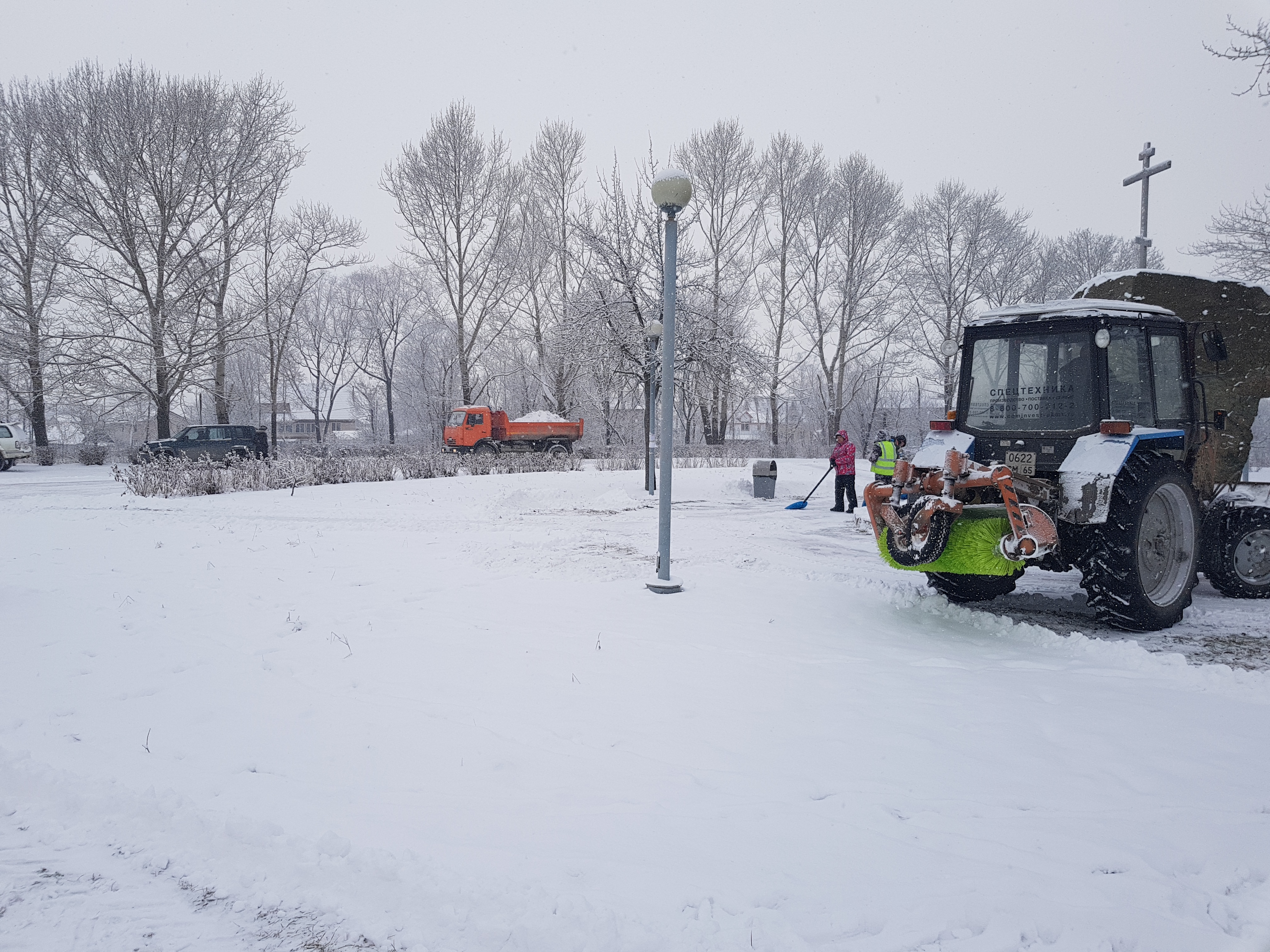 Перед началом митинга 6 единиц техники, как обычно ведет свои подсчеты муниципалитет, принялись вычищать сквер «У камня». Ими оказались: три оператора снеговых лопат, фронтальный погрузчик,трактор с навесной щеткой и самосвал, которые дружно работали на благо горожан. Явление стало для нас удивительным, тем более что двигались мы через весь город и увидели работы по расчистке снега только здесь.