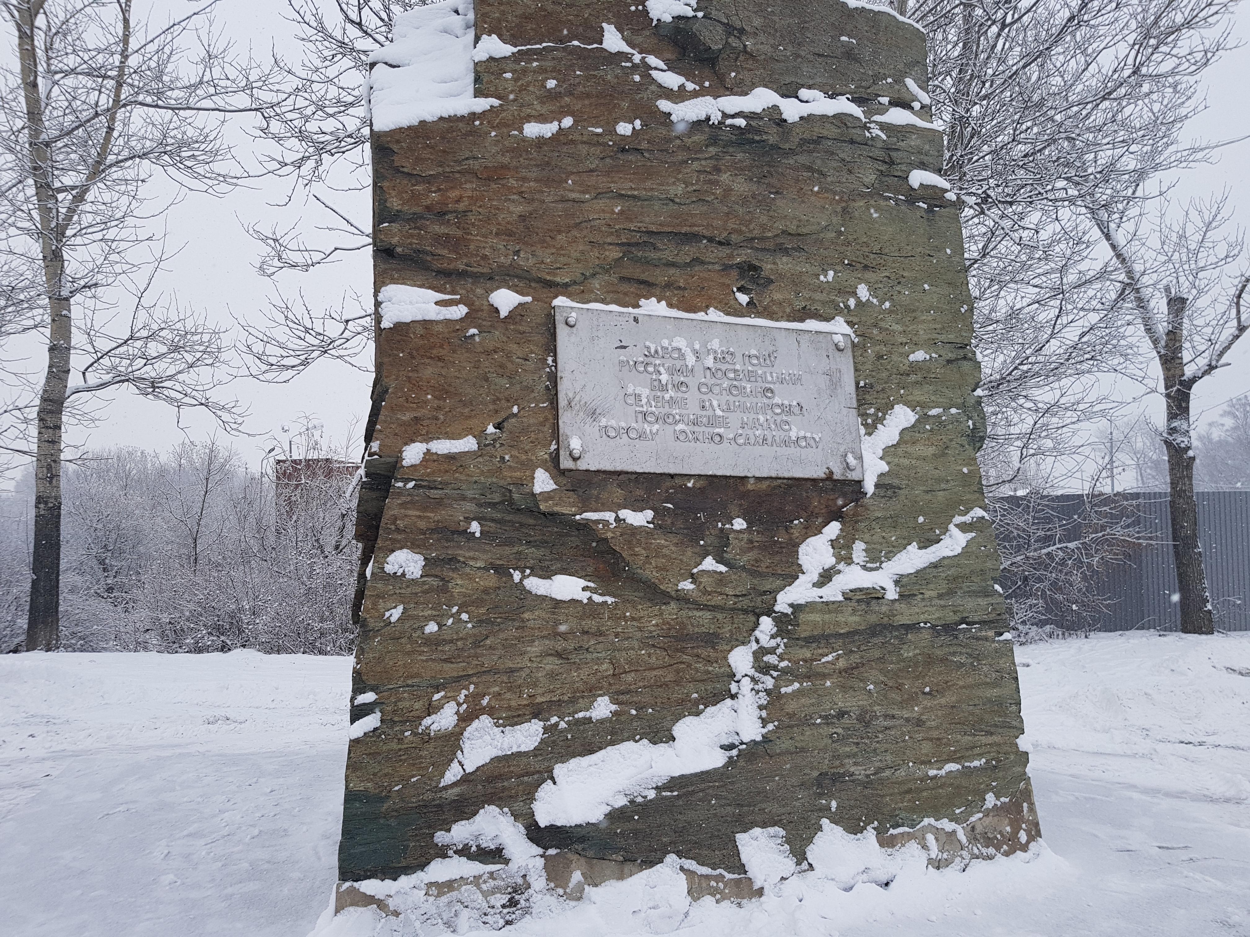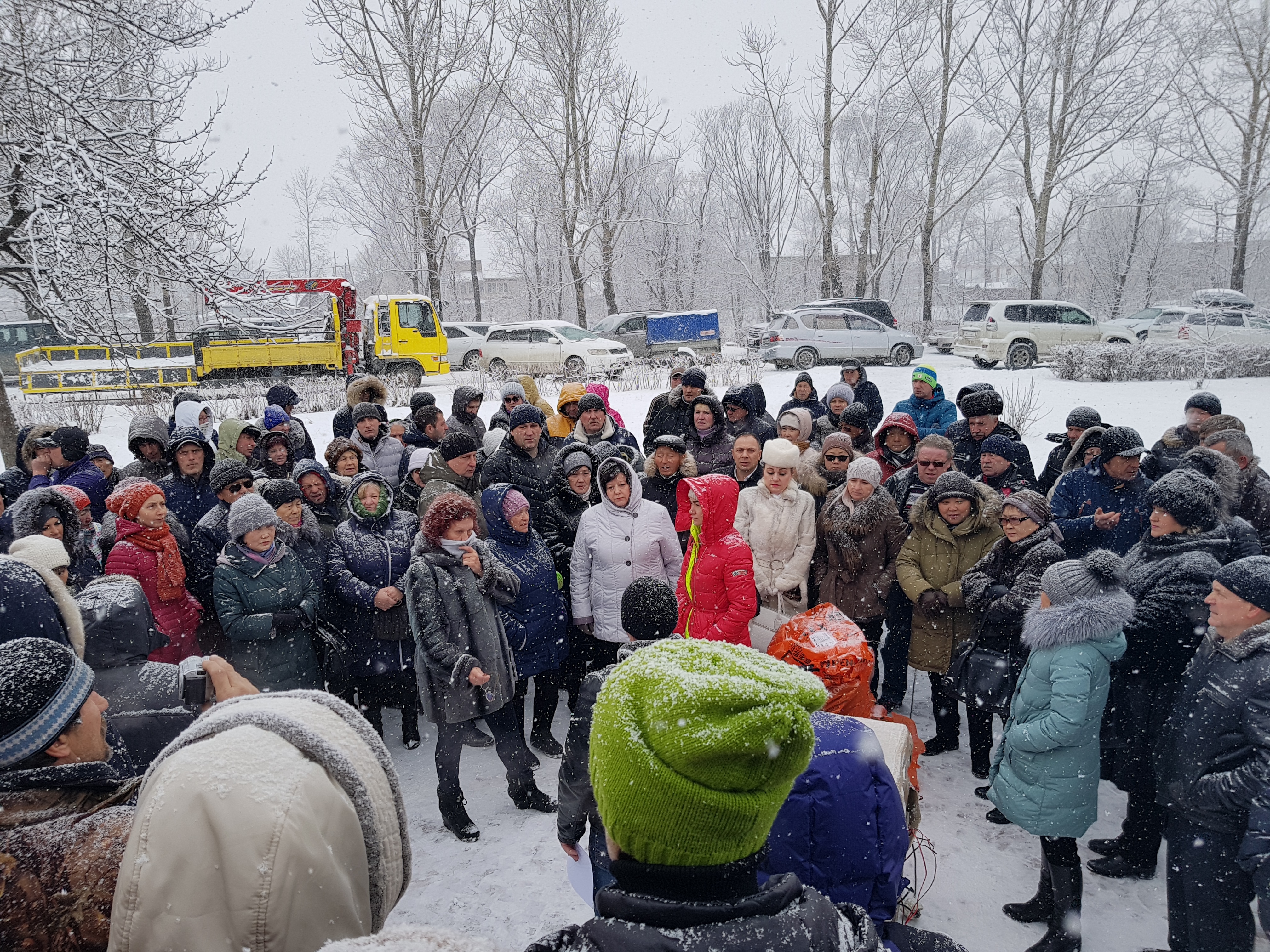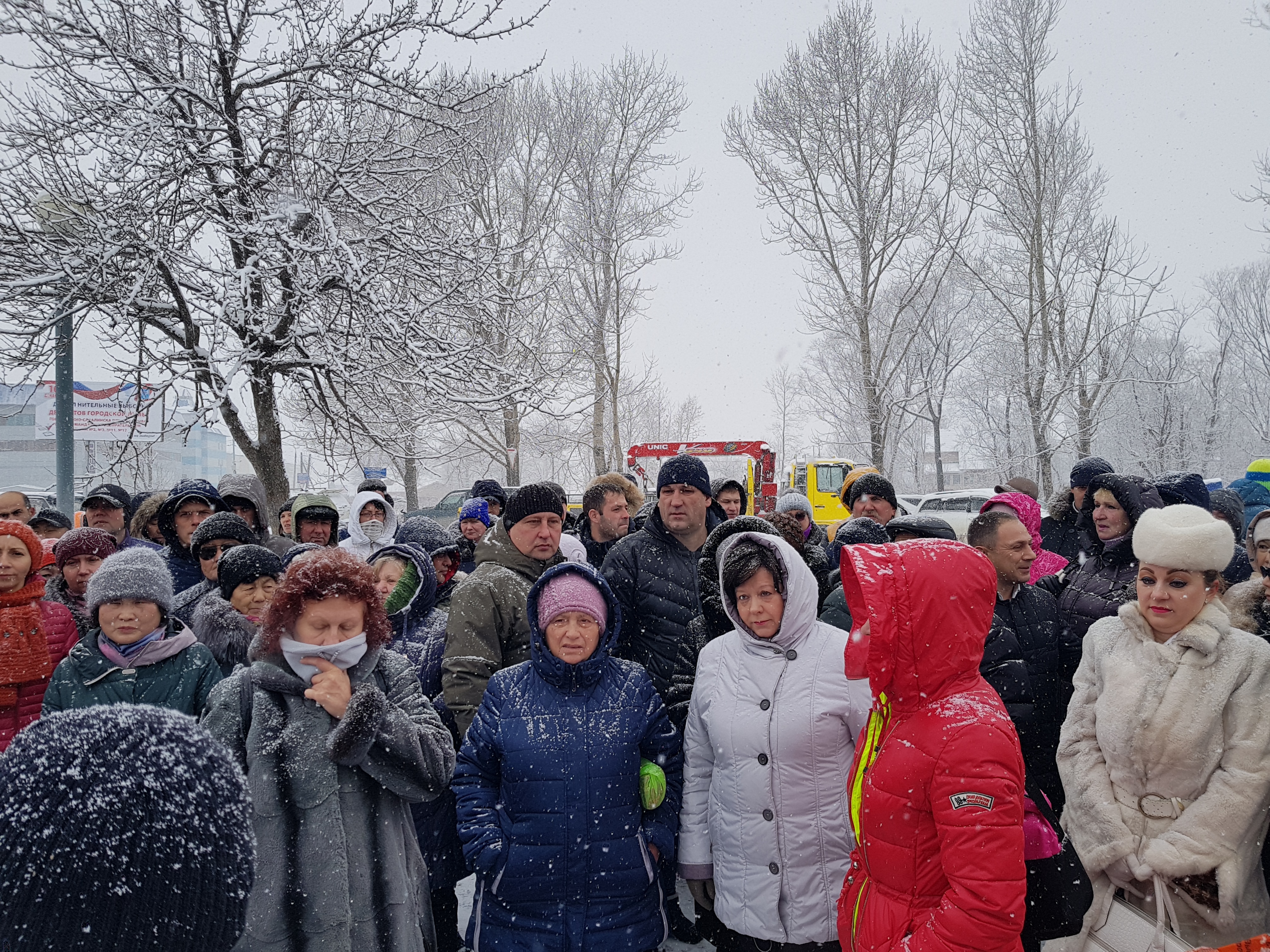 В этот день в Южно-Сахалинске шел снегопад. Мы заранее выдвинулись к месту проведения мероприятия, тем более что о митинге было объявлено еще не заседании облдумы, в присутствии высших должностных лиц области. Этот сквер южносахалинцы называют «У камня», здесь, с этого места берет свое начало Южно-Сахалинск, и именно в этом анклаве накопилось множество коммунальных проблем и вопросов благоустройства. Исторический центр превратился в гетто, забытое небесными силами и муниципальными властями.