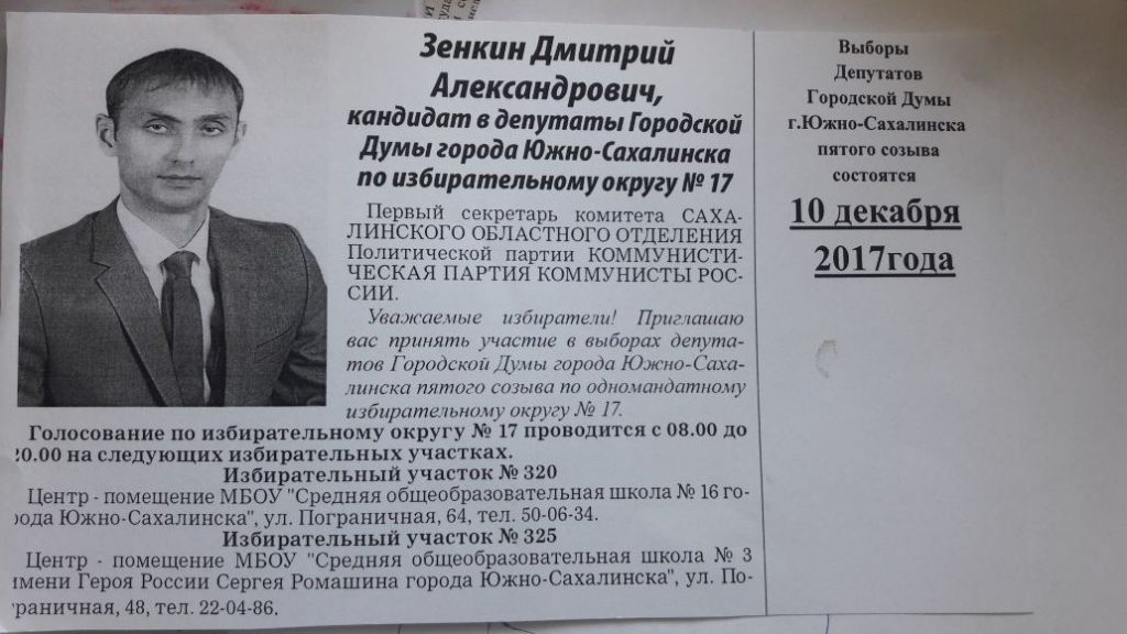 Агитационный листок, призывающий голосовать за кандидата Дмитрия Зенкина гулял по территории без выходных данных и «умер» в руках дворников.