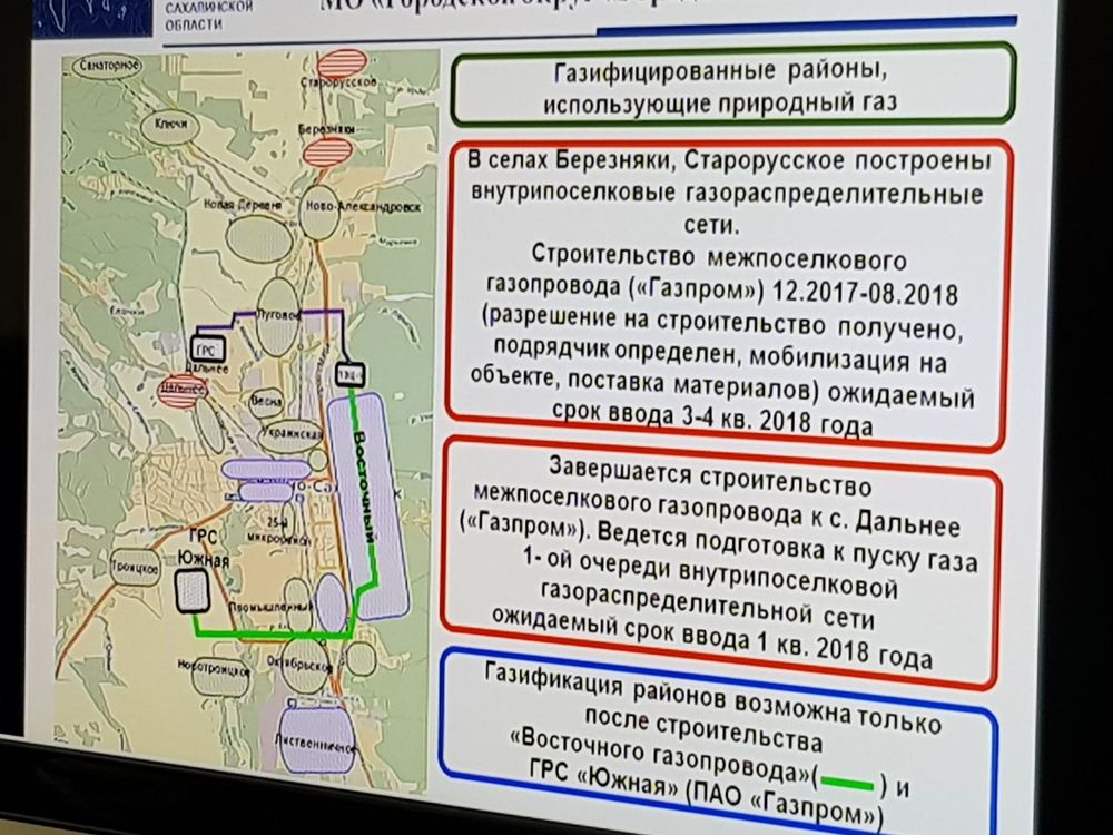 Присутствующим было обещано начало работ по газификации в Макаровском, Поронайском, Корсаковском, Долинском и Александровск-Сахалинском муниципальных округах.