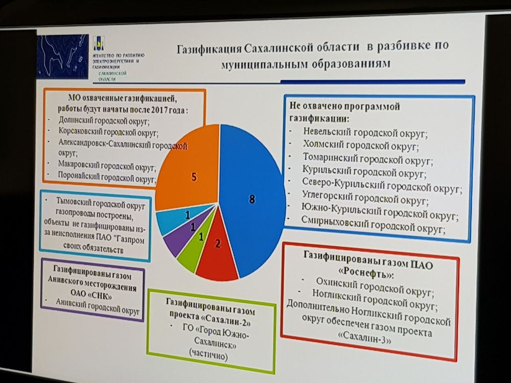 Здесь, руководитель агентства и зампред правительства в одном лице рассказывал о программах и подпрограммах, о количестве совещаний в правительстве и совместно с Газпромом. Перечисленные мероприятия внушали уважение по своему представительскому составу и частоте событий. Сахалинская область серьезно отстает в своем развитии, имея ввиду уровень газификации: 13% против 67 – 68 % в среднем по стране. Это при условии, что мы добываем этот самый газ и, фактически, население области и предприятия его не используют.
