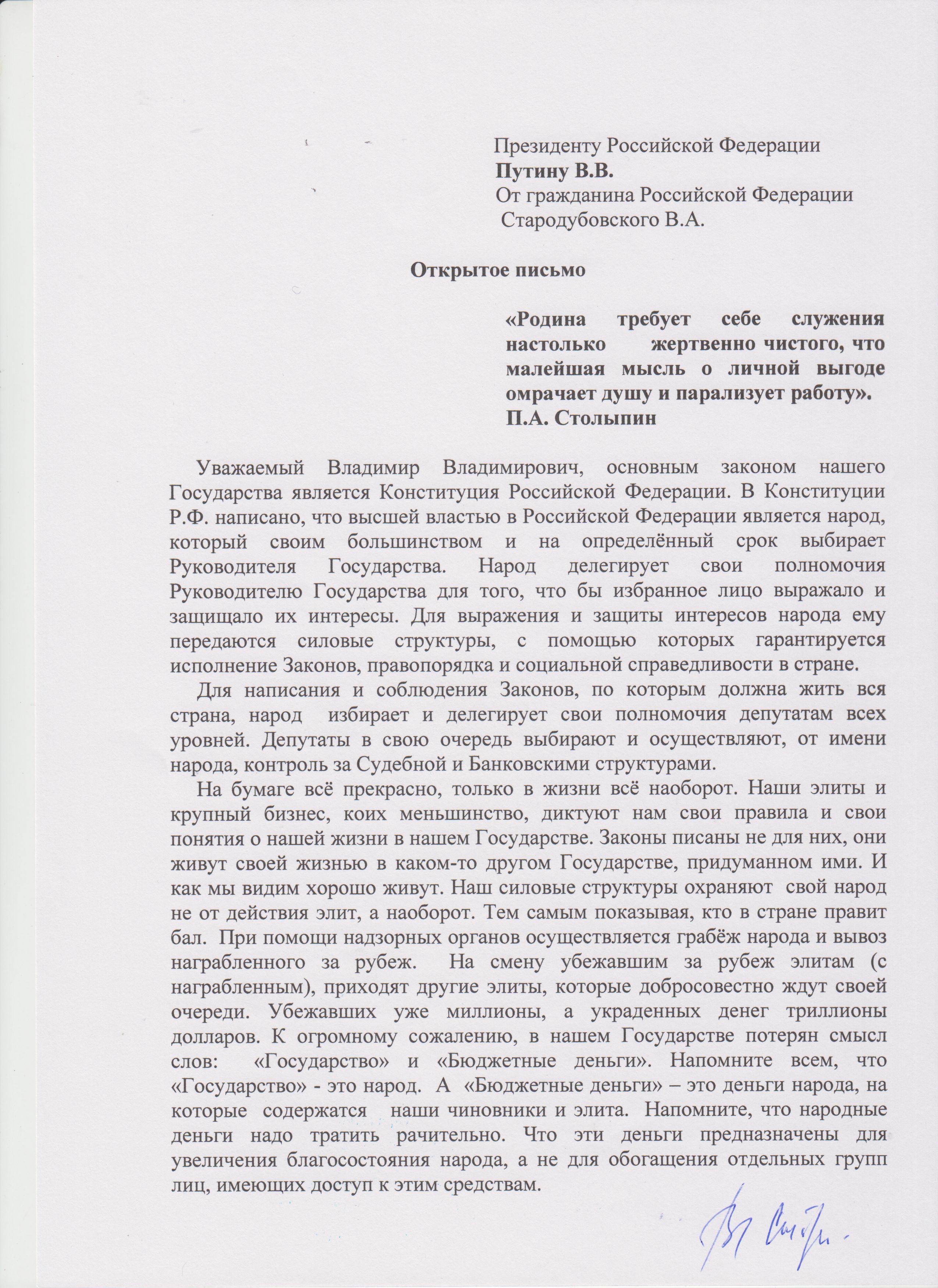 Этот прецедент стал поводом для обращения к Президенту Российской Федерации.
