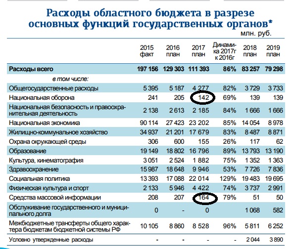 Согласно официальным данным, расходы сахалинского бюджета на 2017 год по статье “национальная оборона” составили 142 млн рублей и эта статья меньше официальных расходов регионального бюджета на СМИ – 164 млн рублей.