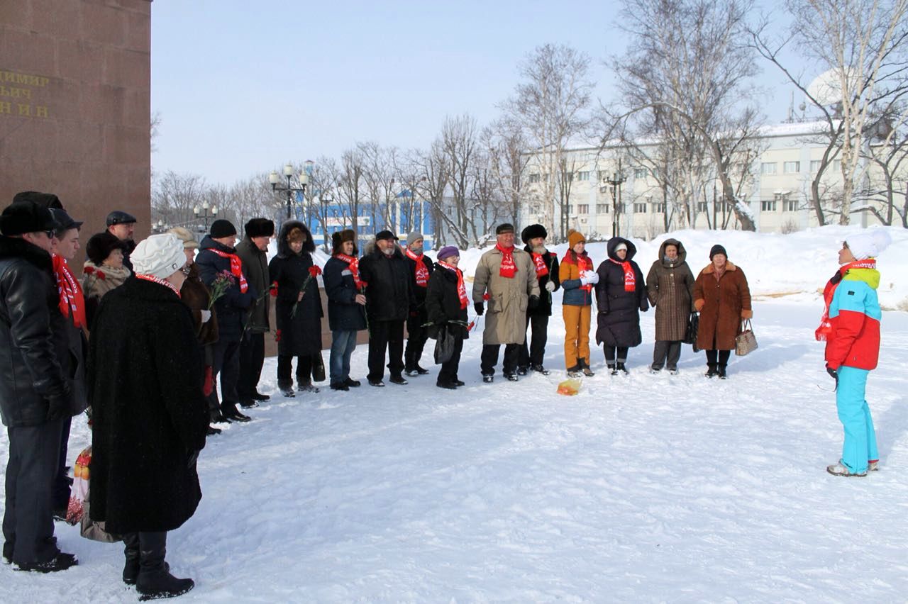 На центральной площади областного центра собрались, представители регионального отделения партии, члены Южно-Сахалинского городского комитета. Коммунисты заранее подготовили место для возложения цветов, расчистив его от выпавшего накануне снега. Среди собравшихся: член бюро областного комитета и руководитель общественной приемной Геннадия Зюганова Жанна Матвеева, депутат Сахалинской областной Думы Светлана Иванова, инструктор местного отделения Валерий Горенков и другие товарищи.