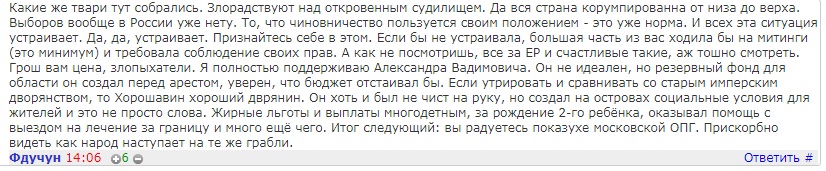 На местном форуме уже появились отзывы читателей, которые не стесняются в выражениях, оценивая результаты суда и сложившуюся ситуацию в области: