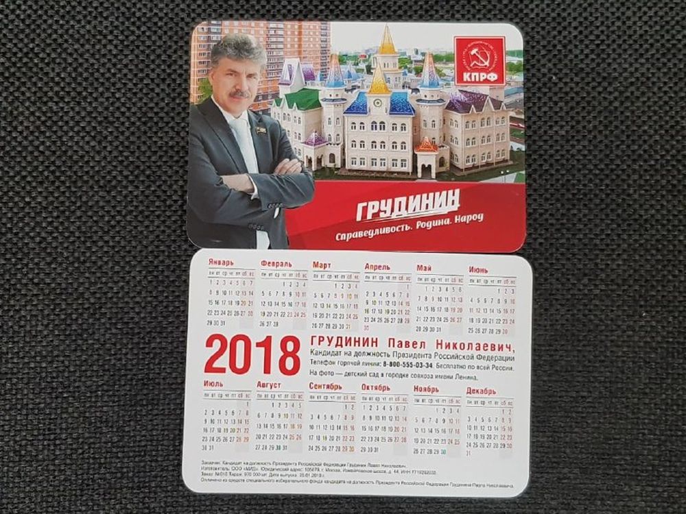 Сахалинское отделение политической партии КПРФ организует раздачу карманных календарей на 2018 год с изображением кандидата в Президенты России от левых сил Павла Грудинина.