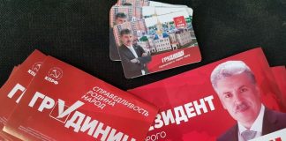 Наклейки “ЗА Грудинина” раздает КПРФ
