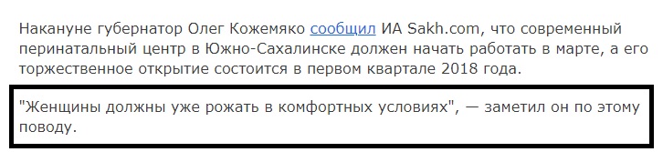 Буквально шепотом, накануне, состоялось открытие перинатального центра в Южно-Сахалинске. Мы уже писали о том, как “опережающими темпами” возводили это лечебное учреждение. Писали какое пристальное внимание уделяли чиновники его строительству, периодически меняя сроки ввода в эксплуатацию. Писали не только мы, писали островные СМИ, не погружаясь особо в клубок проблем, который формировался вокруг центра. Ходили устойчивые слухи – в канун выборов, на его открытие готовился приехать президент. Бог миловал, поездку отложили, как и отложили “красную ленту” с ножницами в руках Владимира Путина – после оправдаться за это открытие главе государство было бы сложно.