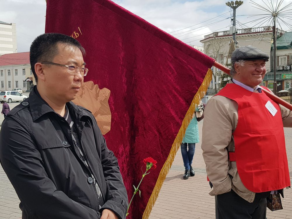 На площадь прибыли члены областного комитета и председатель фракции КПРФ Сахалинской областной Думы Юрий Федорович Выголов.
