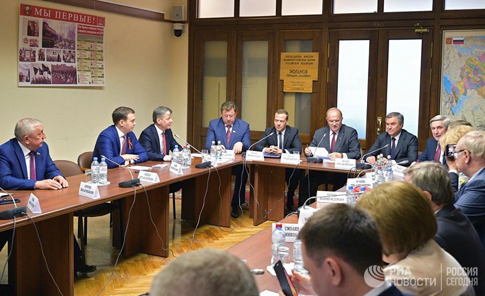 8 мая 2018 Дмитрий Медведев посетил фракцию КПРФ в Госдуме. На встрече присутствовали: председатель Государственной Думы СФ РФ Вячеслав Володин, председатель фракции КПРФ в Государственной Думе Геннадий Зюганов и собственно сам кандидат в премьер-министры. Иных кандидатов у президента Владимира Путина не оказалось.