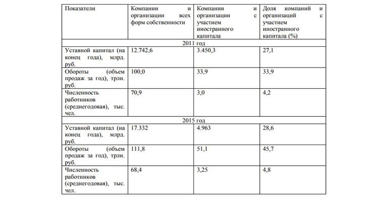 Позиции компаний и организаций с участием иностранного капитала в российской экономике: