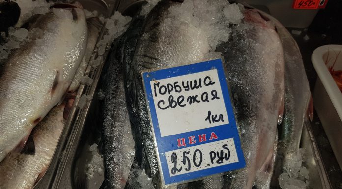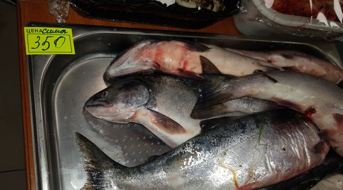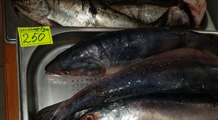 Не остались без внимания центральные рыбные прилавки областного центра. На микрорынке “Успех” охлажденная горбуша свежего вылова отсутствует полностью, в проходах слышится иностранная речь покупателей, разглядывающих икру и копчености.