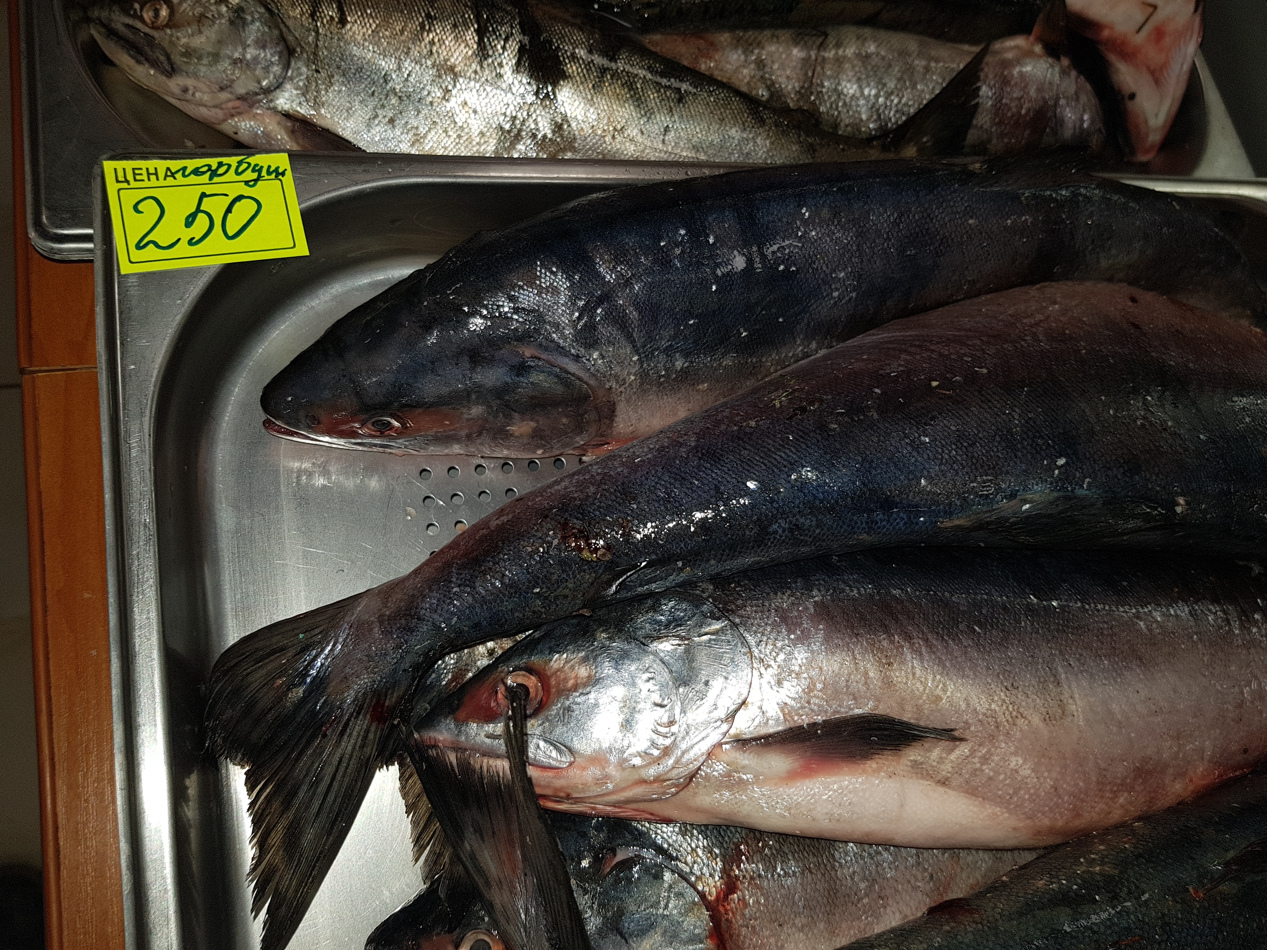 Сколько стоит наша местная рыба, которая не покидала островной регион и практически напрямую дошла до прилавка? У нас практически та же сумма, только с нас взяли на 20 рублей дороже – 250 рублей!