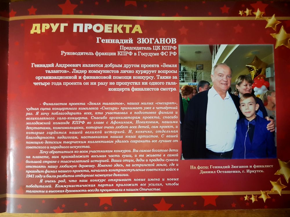 Курирует проект председатель ЦК КПРФ, председатель фракции КПРФ в Государственной Думе Геннадий Зюганов.