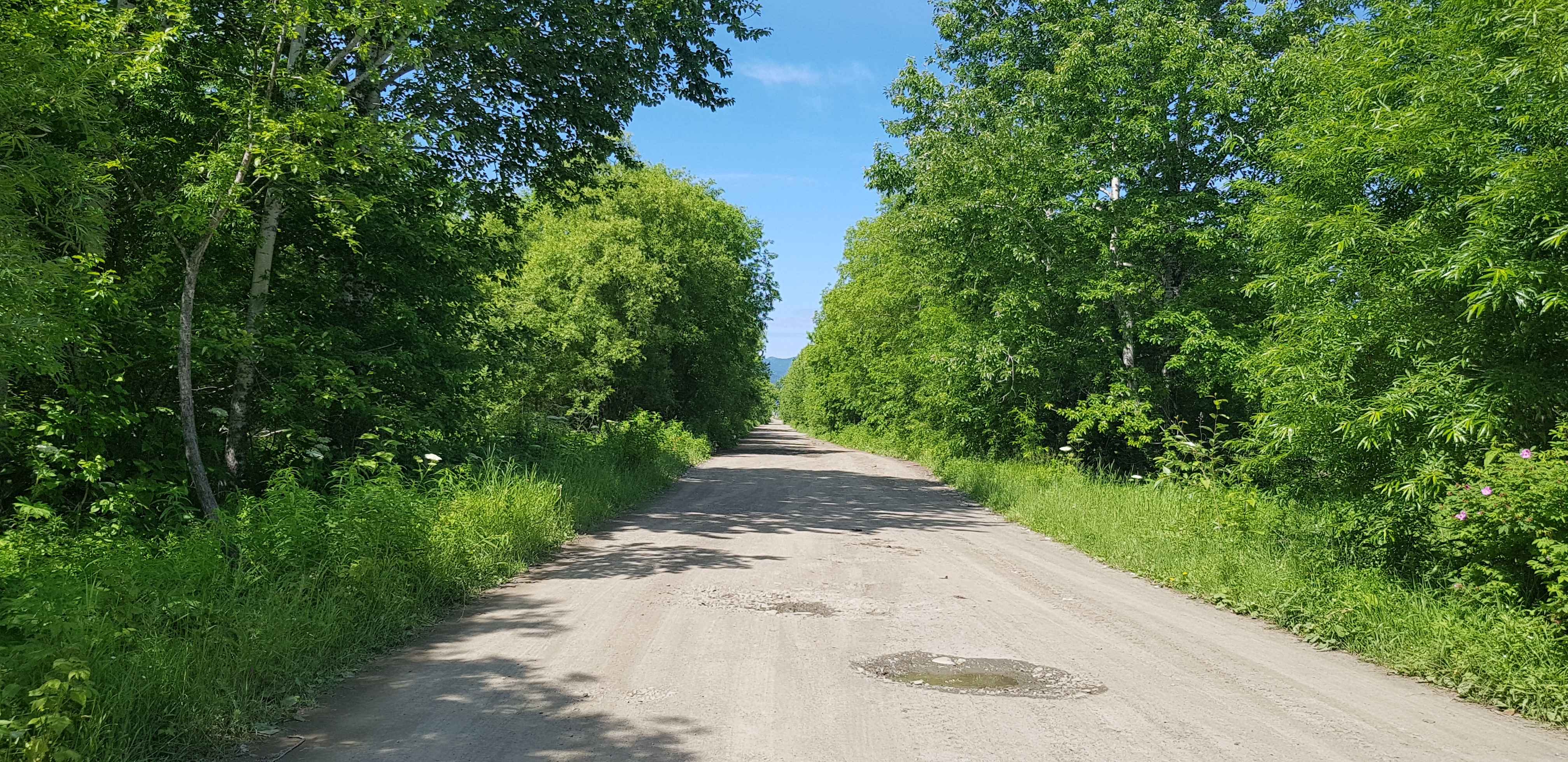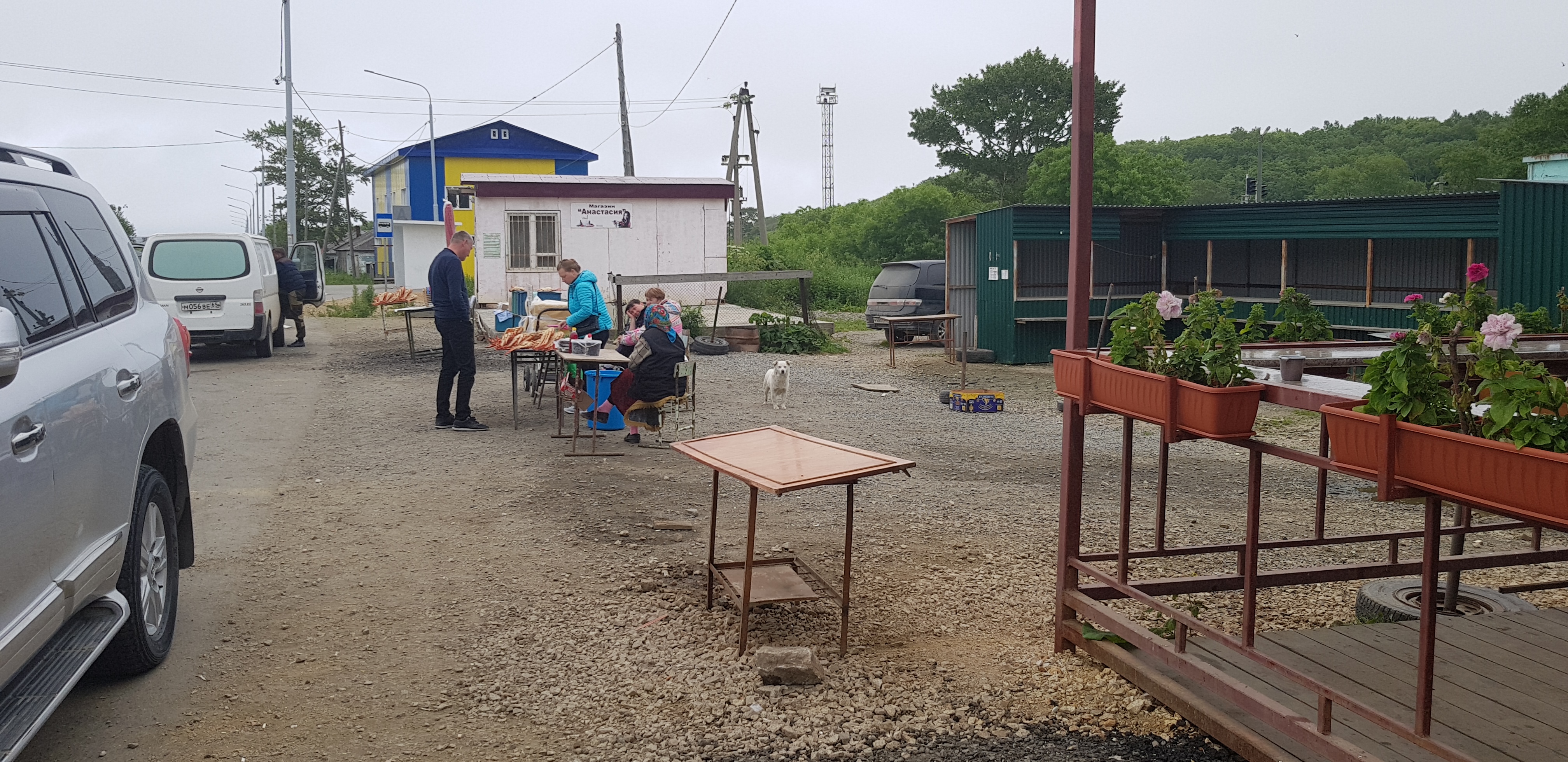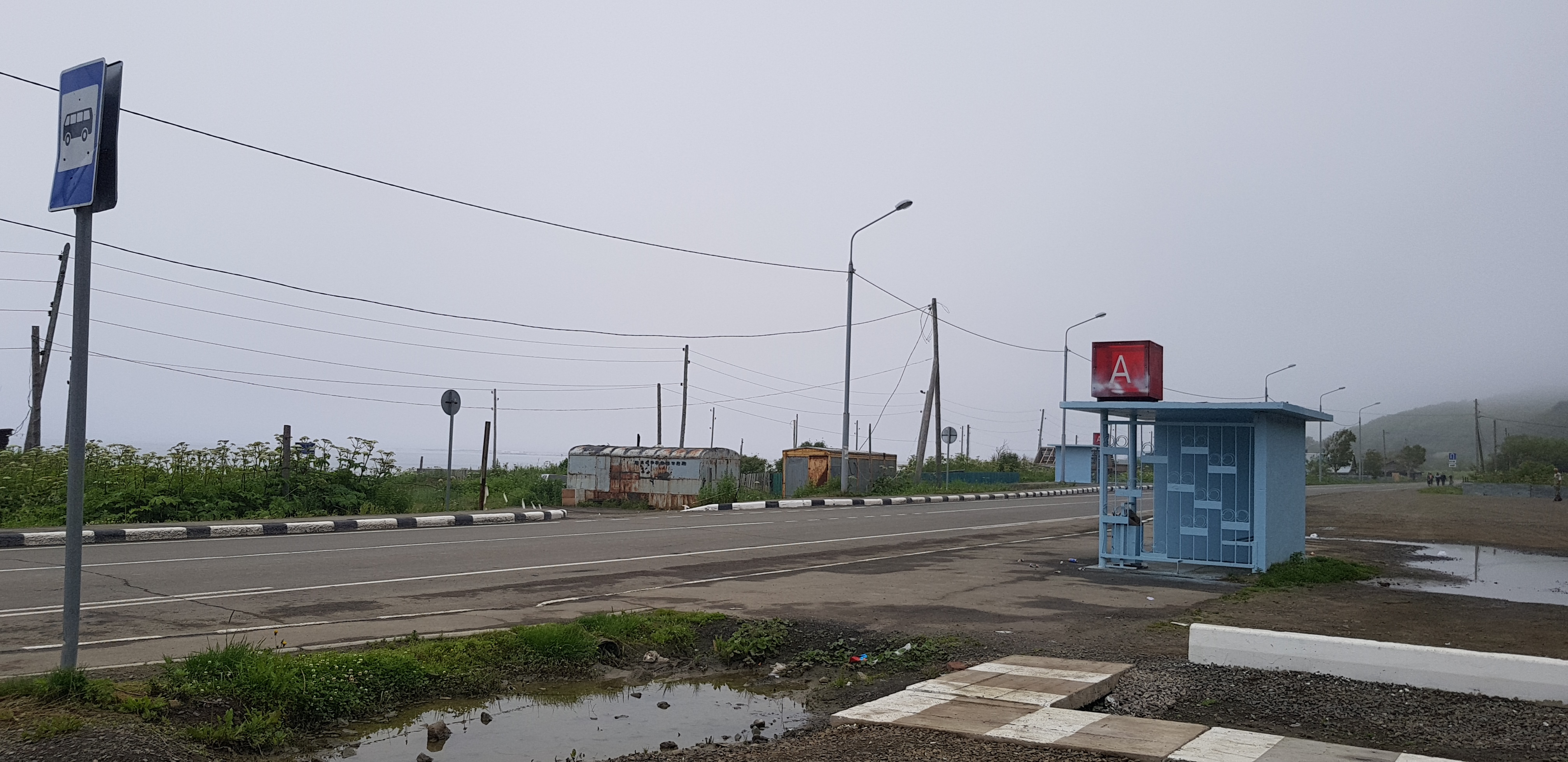 Наш путь лежит по автодороге регионального значения Южно-Сахалинск-Оха. Уже не обращая внимания на наличие, или скорее отсутствие достойных уборных вдоль трассы, останавливаемся выпить горячего кофе в поселке Взморье.