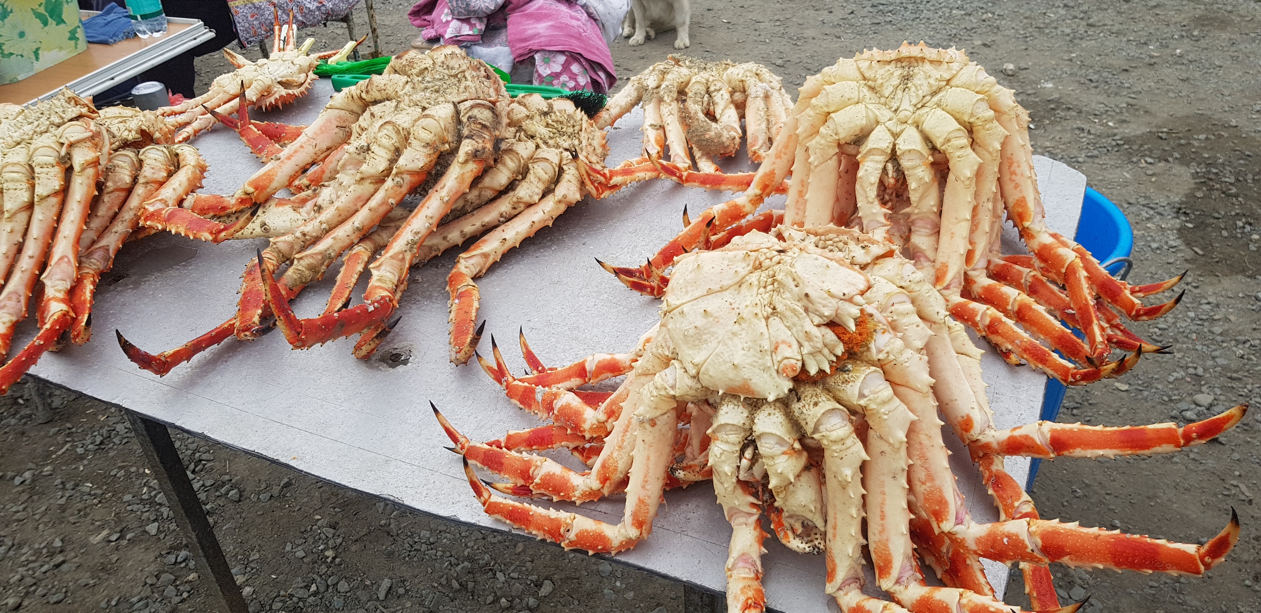 У ларька расположились постояльцы местного рынка, торгующие запасами морского побережья – крабами. “Организованные” прилавки, расположившиеся в отдалении, пусты.