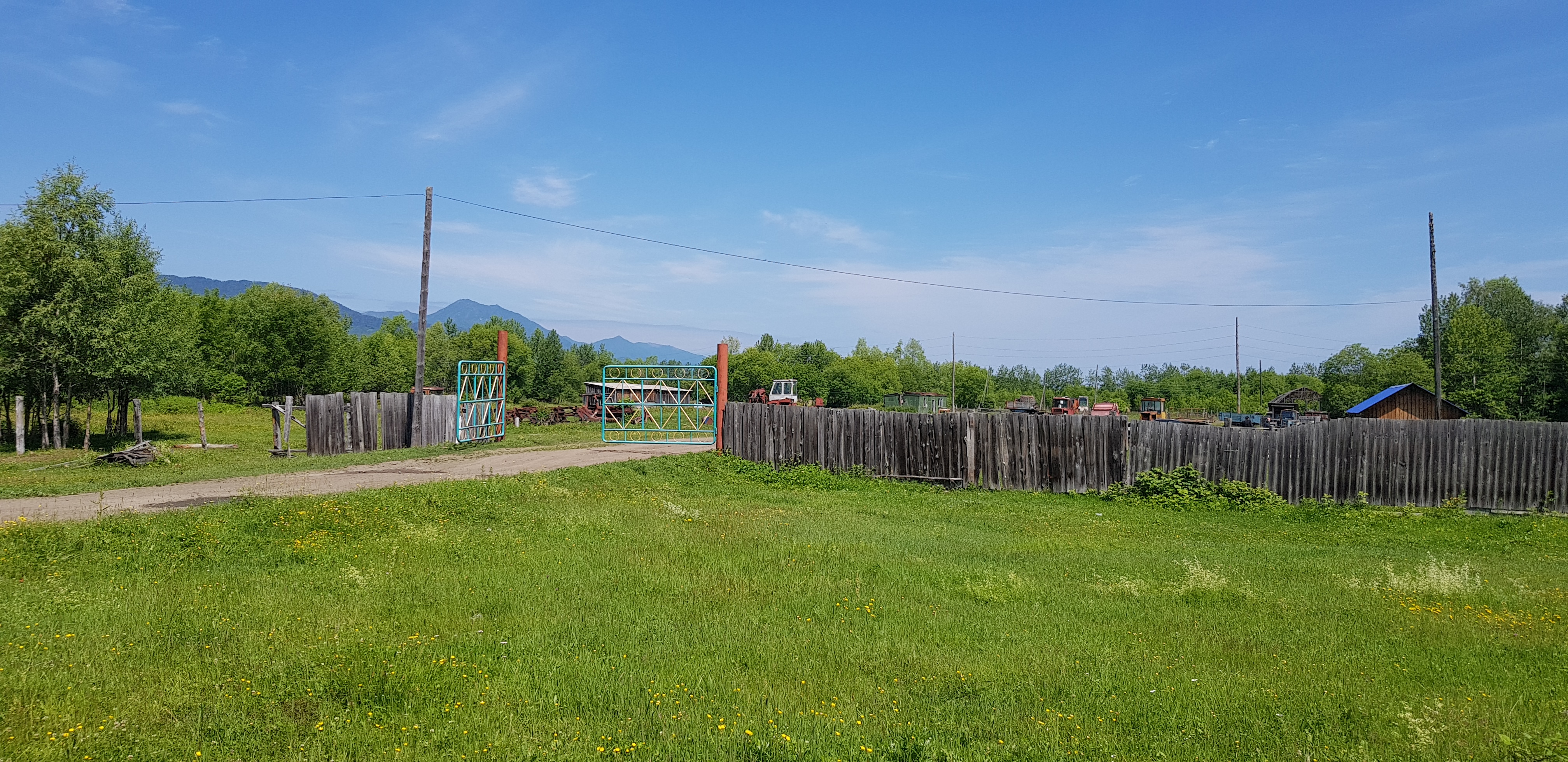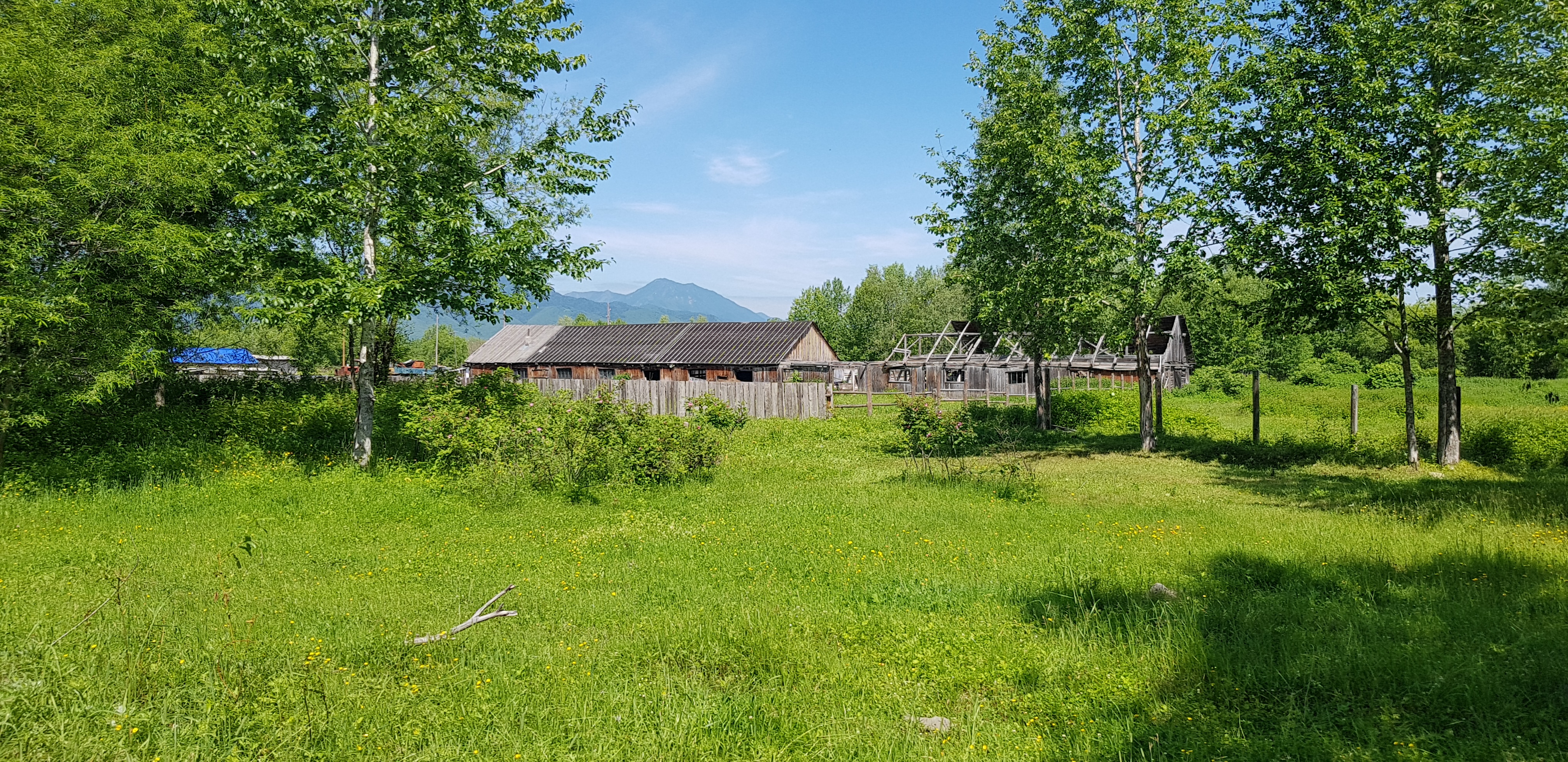 Цель нашей поездки – село Забайкалец. Заехав в округу села, мы двинулись по грунтовой дороге, которая оказалась еще жива и была проложена вдоль существующих животноводческих комплексов, существующих сейчас в виде разрушенных зданий и вдоль заросших молодыми деревьями полей и пастбищ.