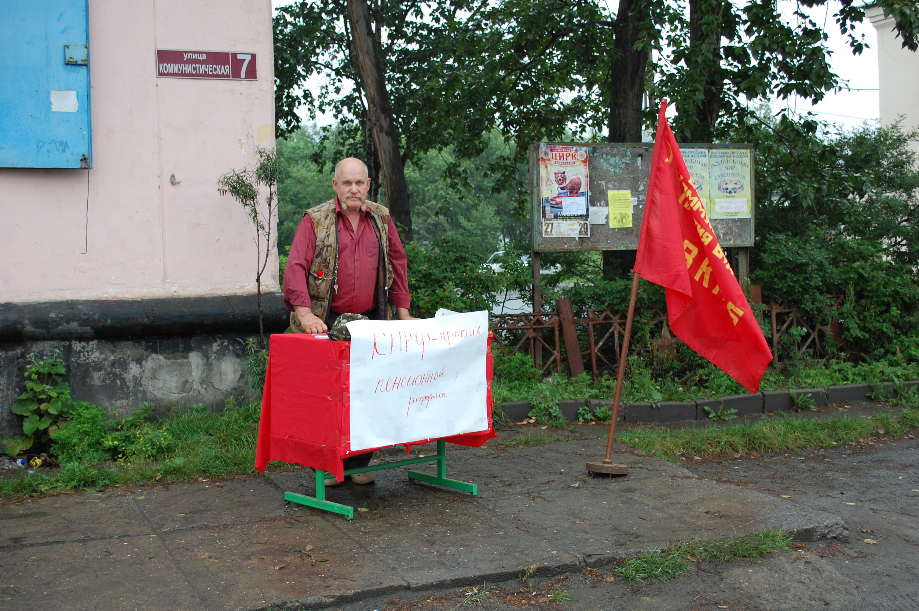 Здесь состоялся пикет против повышения пенсионного возраста, роста цен на бензин и дизельное топливо.